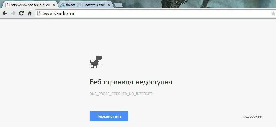 Браузер пишет что нет интернета