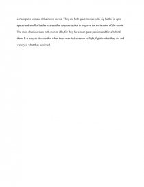 One of these film is Braveheart . William Wallace, played by Mel Gibson, is the central character and hero of the movie . He is the motivator of men . He is a leader of men . He rallies his Scottish countrymen to his belief that the English had to be fought and Scotland had to be independent . This film has some huge battle scenes of men fighting . . .