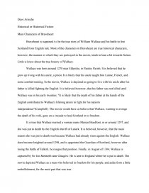 Check out our " Braveheart " essay sample . If You like it, order essay on this topic right now! . . . To my mind, the film Braveheart really explores the historical events and people through a human angle and gets the audience more involved with the historical characters portrayed in the film than with the events, which have many historical . . .