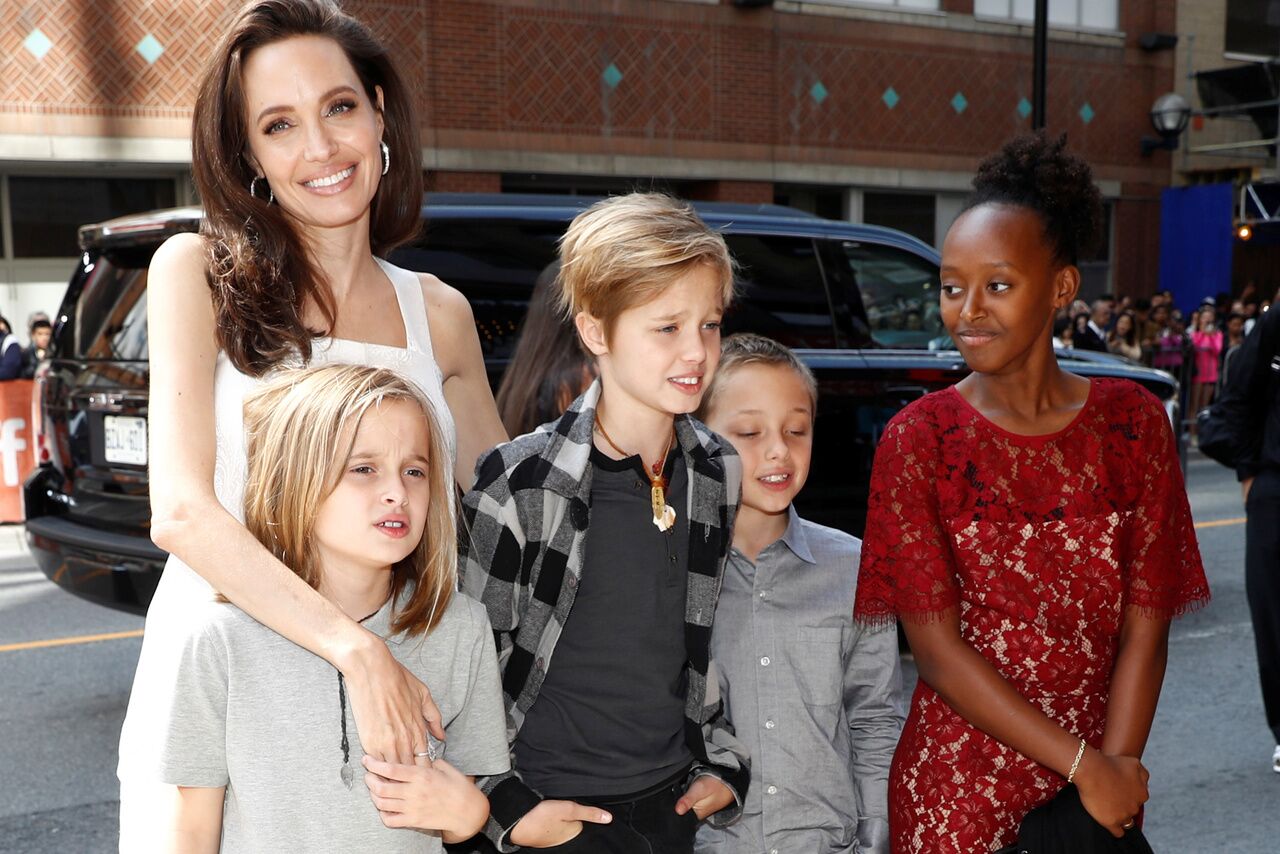 Фото детей Анджелины Джоли и Брэда Питта 2017 . Вивьен (9), Мэддокс (16), Пакс (13), Нокс (9), Шайло (11), Захара (12) с Анджелиной на премьере " Сначала они убили моего отца" 11 сентября 2017 года . Шайло, Вивьен . . .