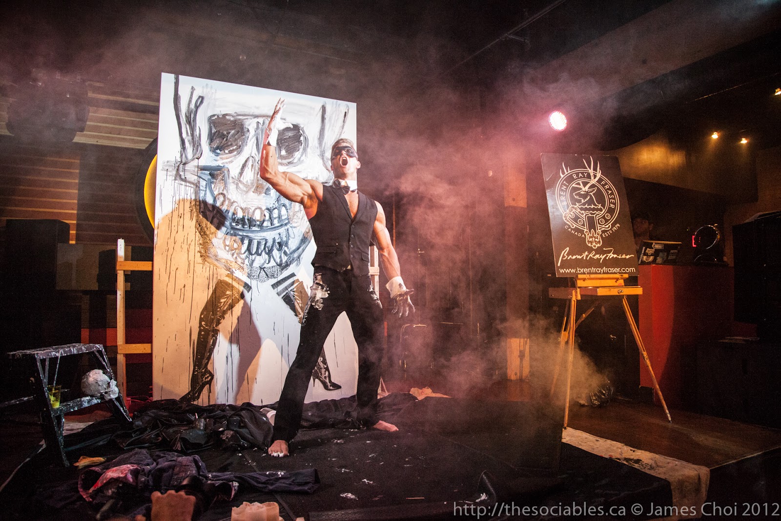 When I think of Brent Ray Fraser, my experiences with him bring one surprising word to mind: Wholesome. He has been the consummate gentleman during every moment I have spent with him. Obviously, the casual observer may think that incongruent considering his subculture lifestyle, but nothing could be further from the truth. He loves his mother, has dinner with his dad every Friday, cares about animals, the environment, and enjoys spending time with his nephews. Fraser very much lives an artist’s lifestyle, which can often mean hour upon hour in solitude working tirelessly on his paintings or conjuring up art performances for charity.