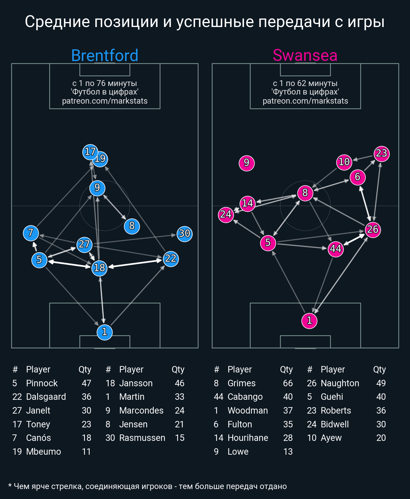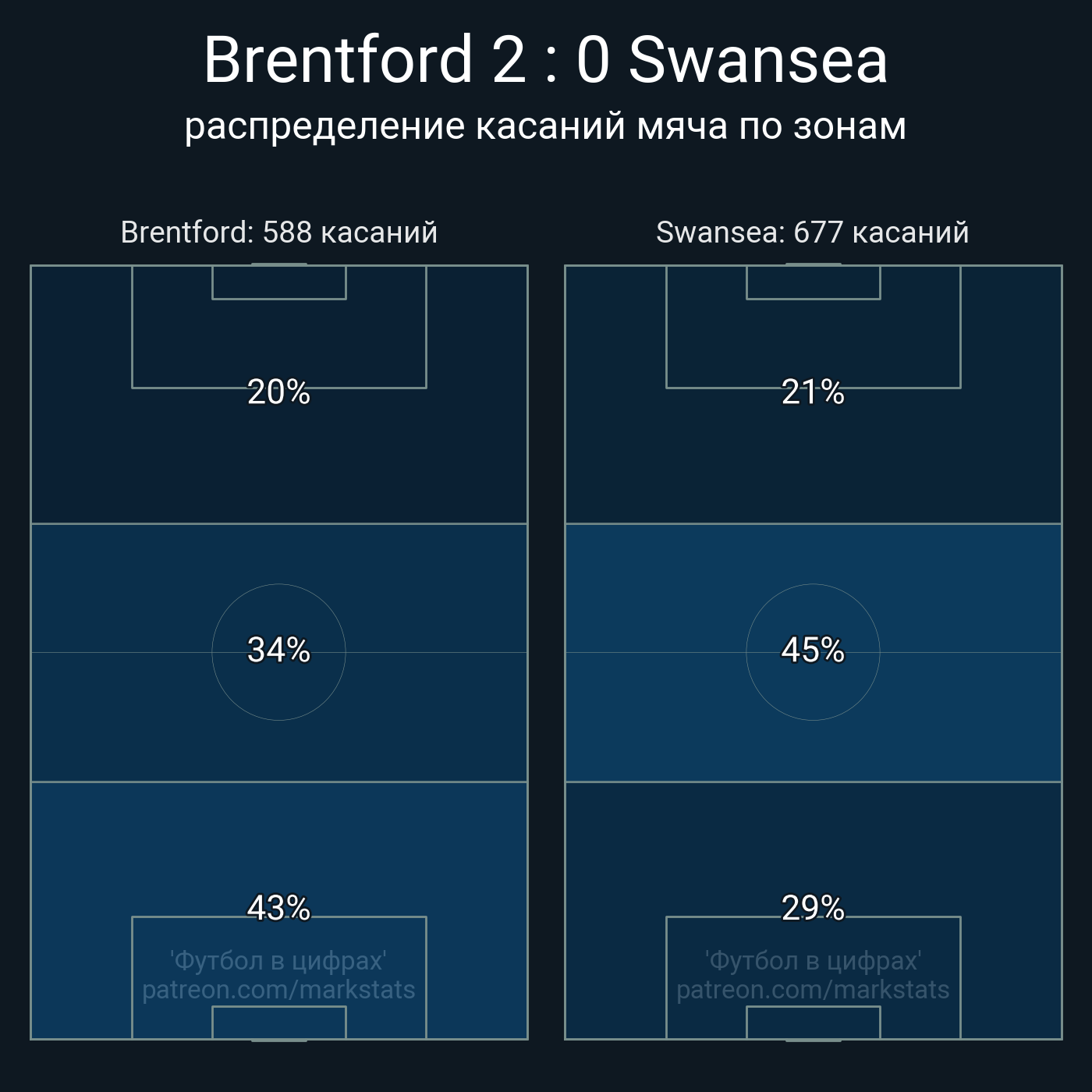 Футбол в цифрахСтатистика матча Brentford - Swansea