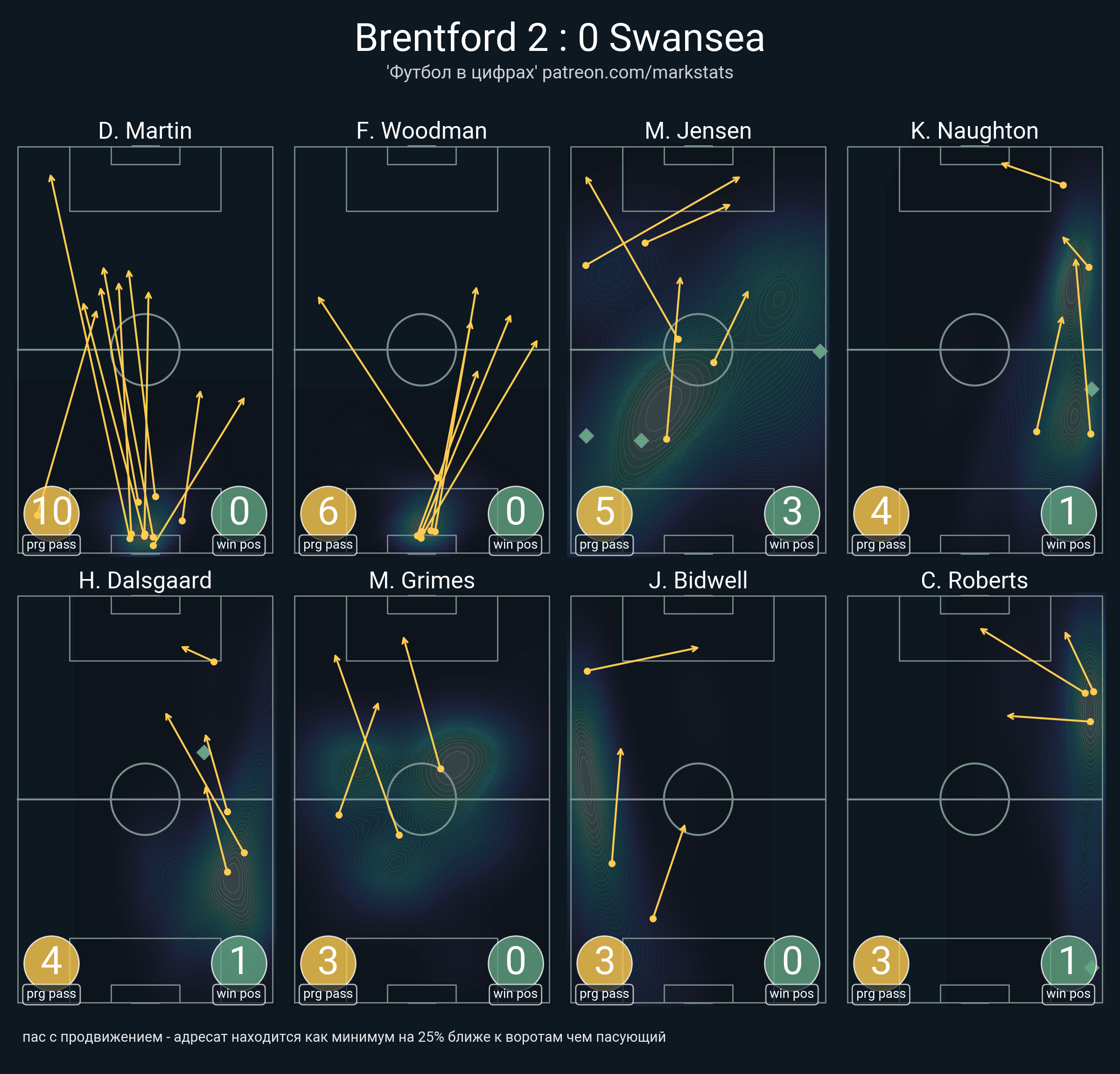 ▪ 20 успешных передач из 33 попыток (10 с продвижением, )