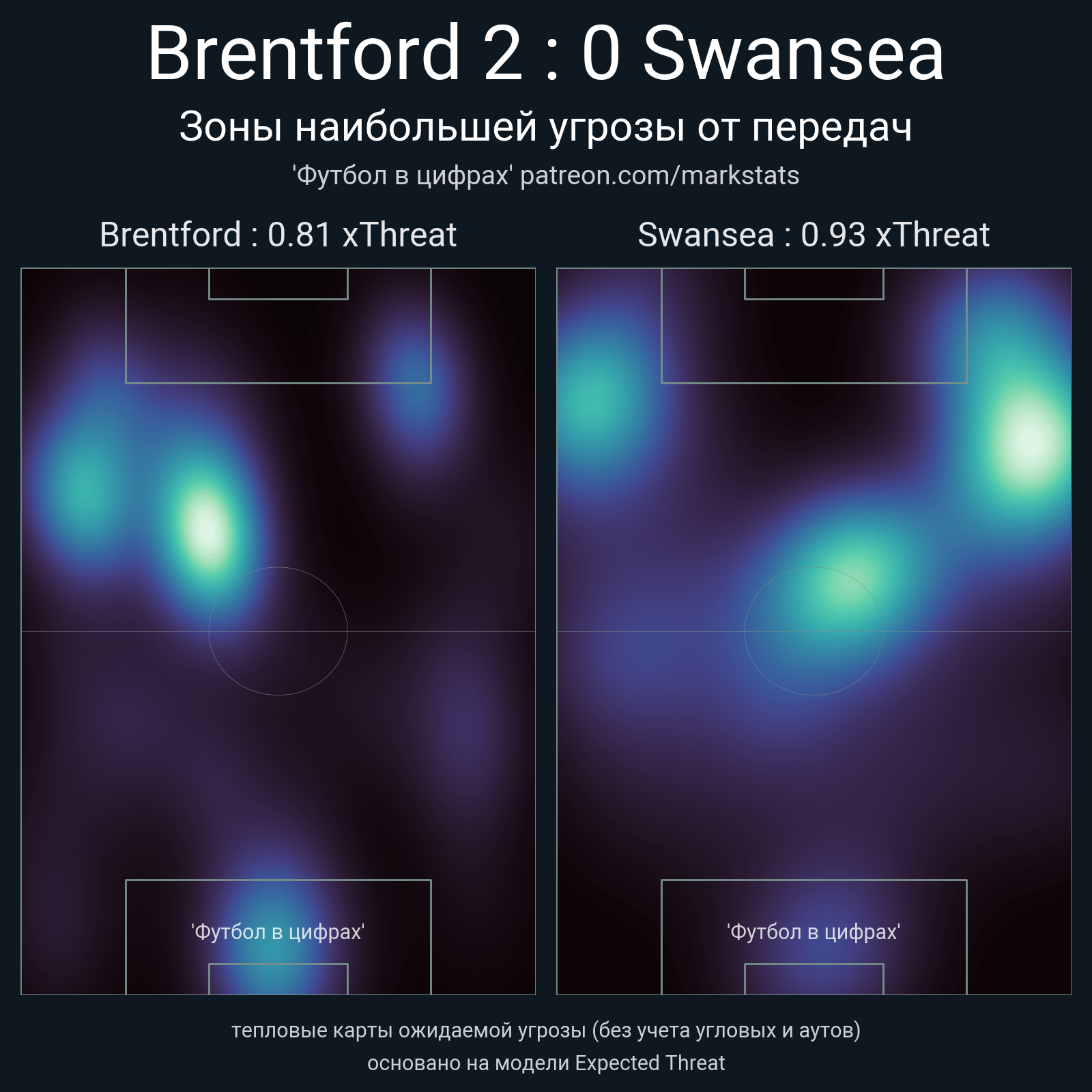 ▪ xThreat без учета угловых: 0.81 - 0.93