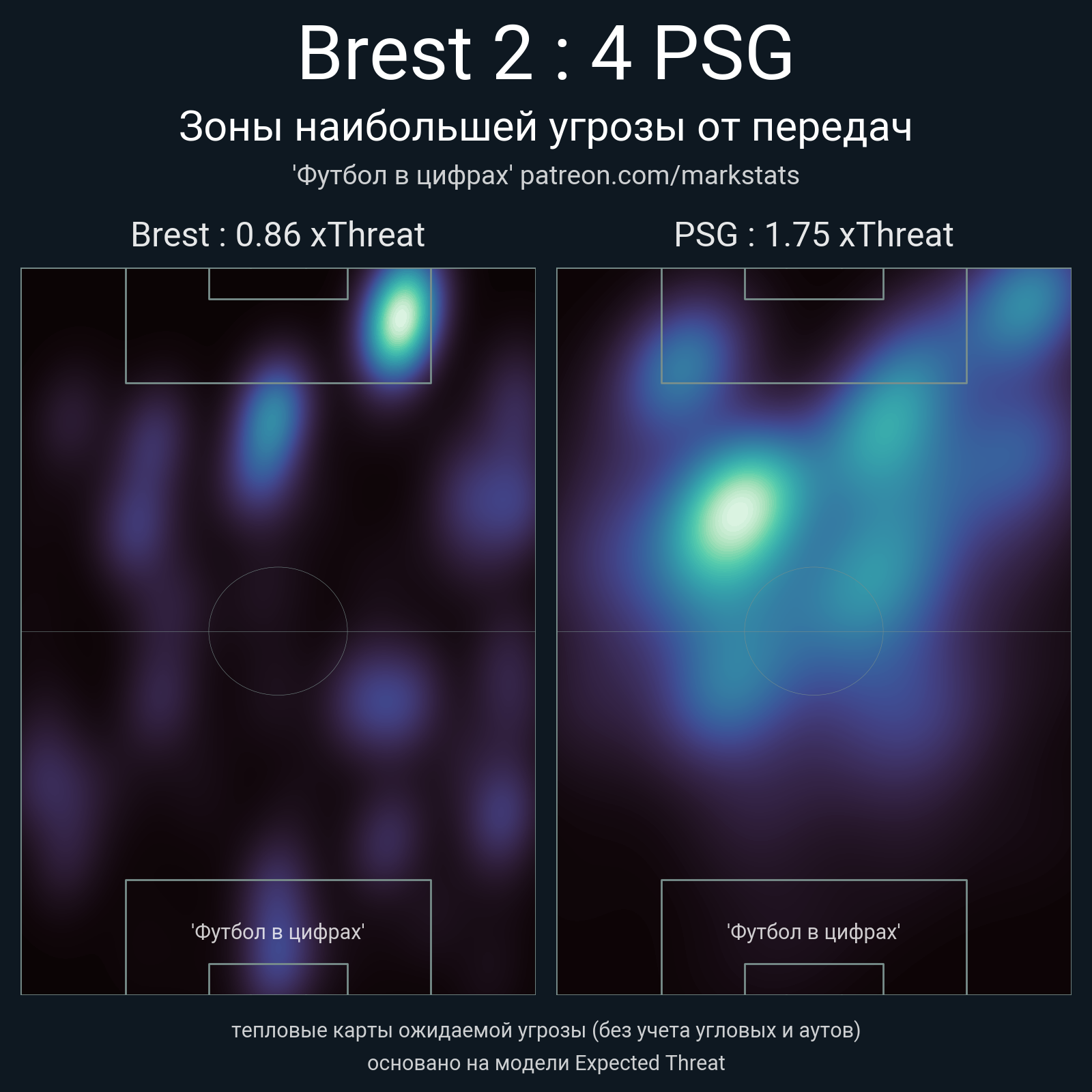▪ xThreat без учета угловых: 0.86 - 1.75
