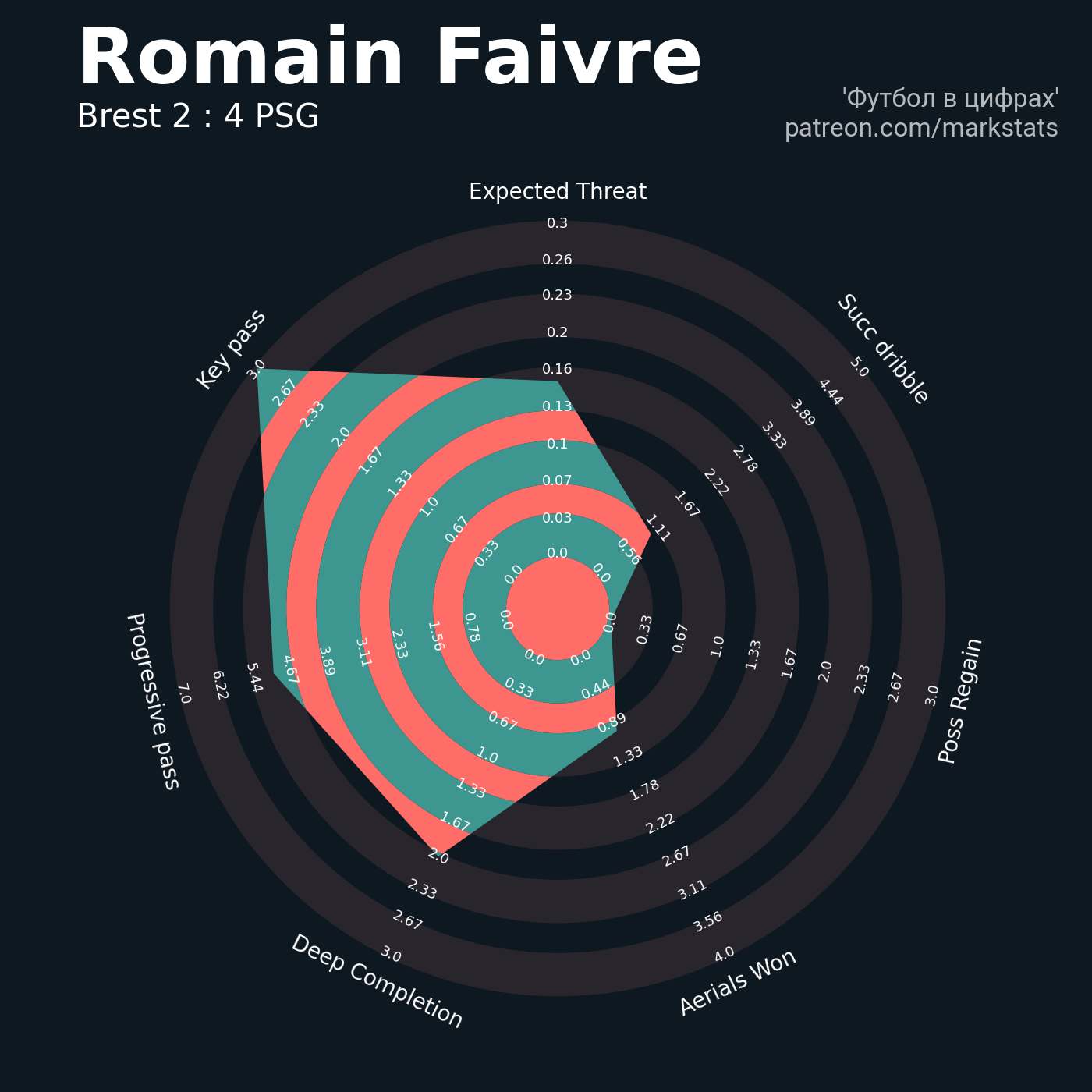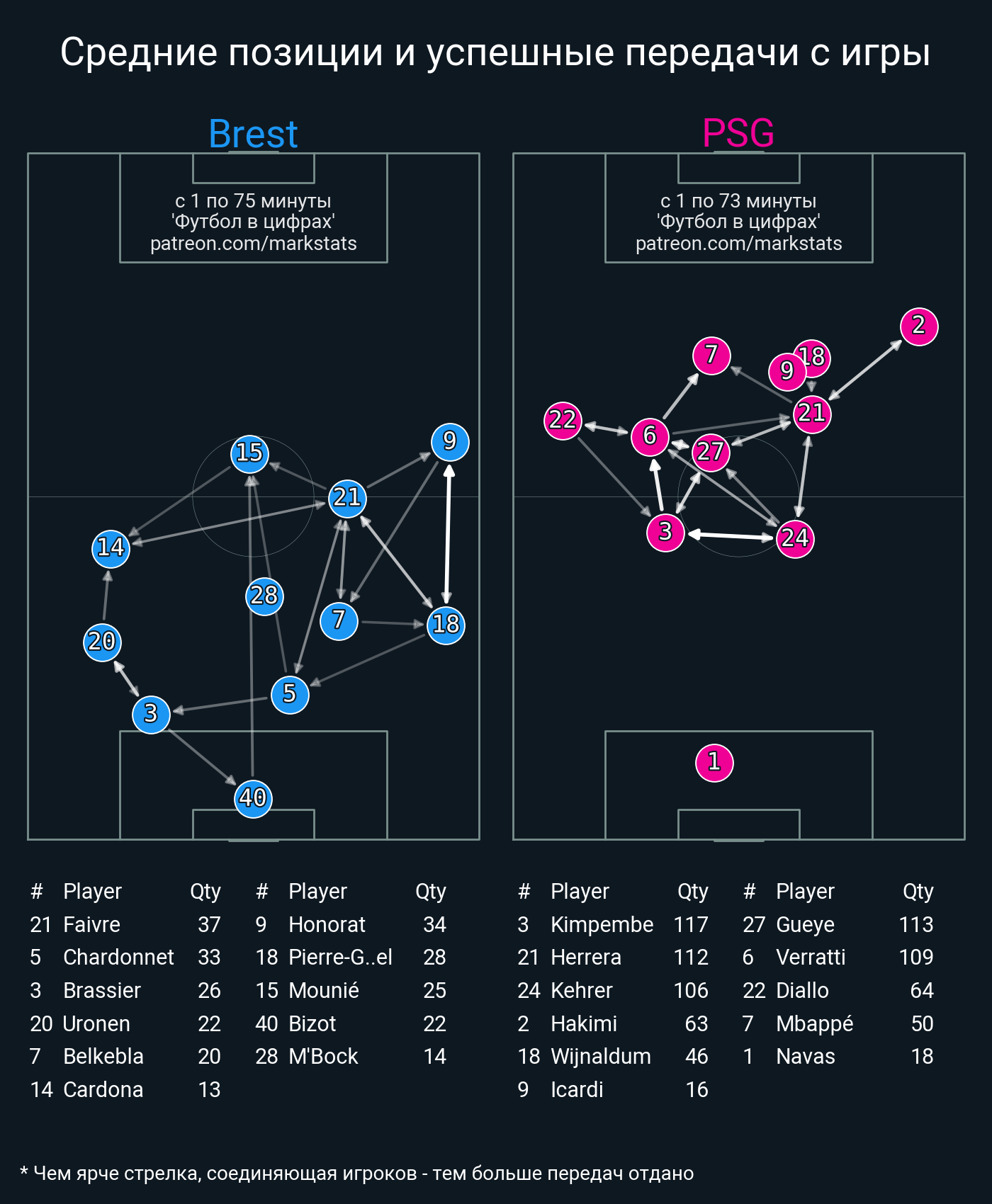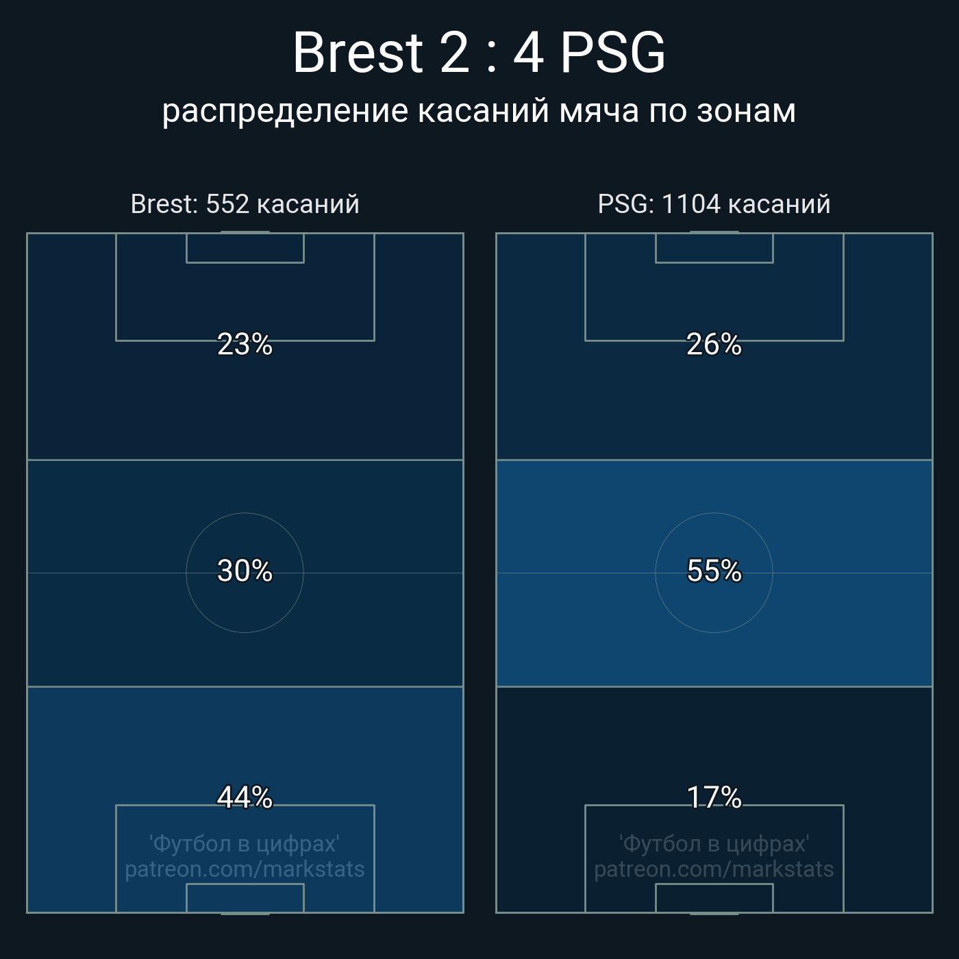 Футбол в цифрахСтатистика матча Brest - PSG