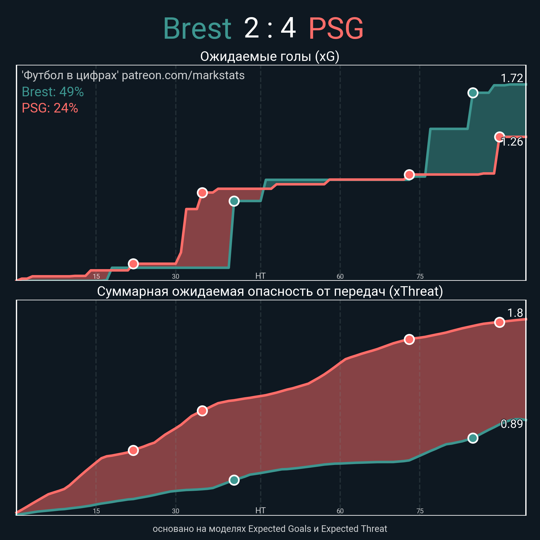 Очки xThreat с игры: