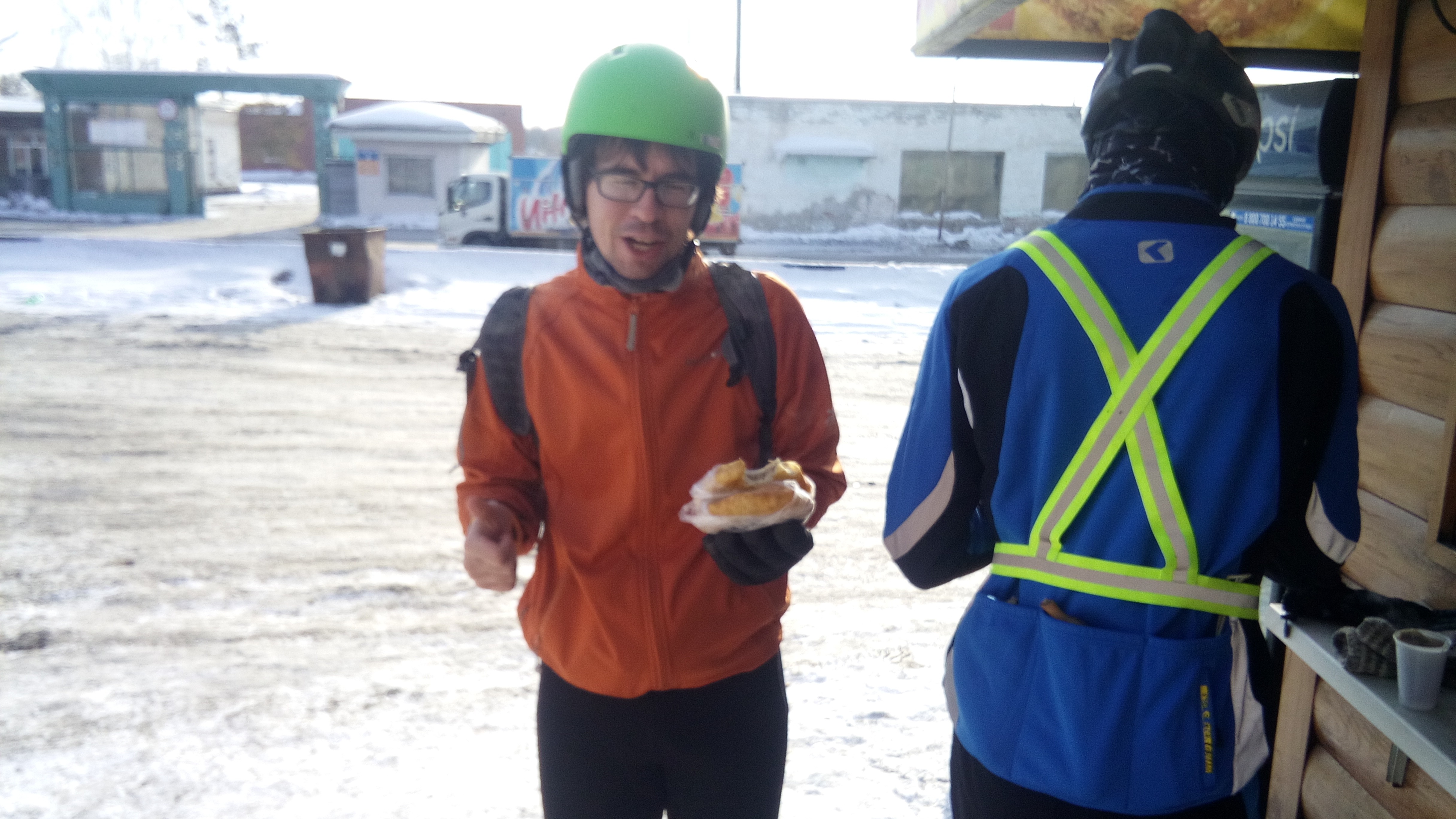 Присутствовал конечно и не приятный фактор , двухнедельный морозы на нет свели и без того скудную жизнь сибирских велосипедистов , я не стал исключением , решив воспользоваться моментом отремонтировал заднее колесо в тест центре , путём замены втулки с трещетки на касету , заменил правый грпшифт , поставил ноаый какой то передний переключатель , привинтил на место задние вибрейки , поставил новые тормозные колодки ) , венцом же моих морозных вечеров , стал вечер накануне старта , поменял предали , правую прикрутил , а левую наживулил и не затянул , малой отвлёк свиснув ключ на 15 )))