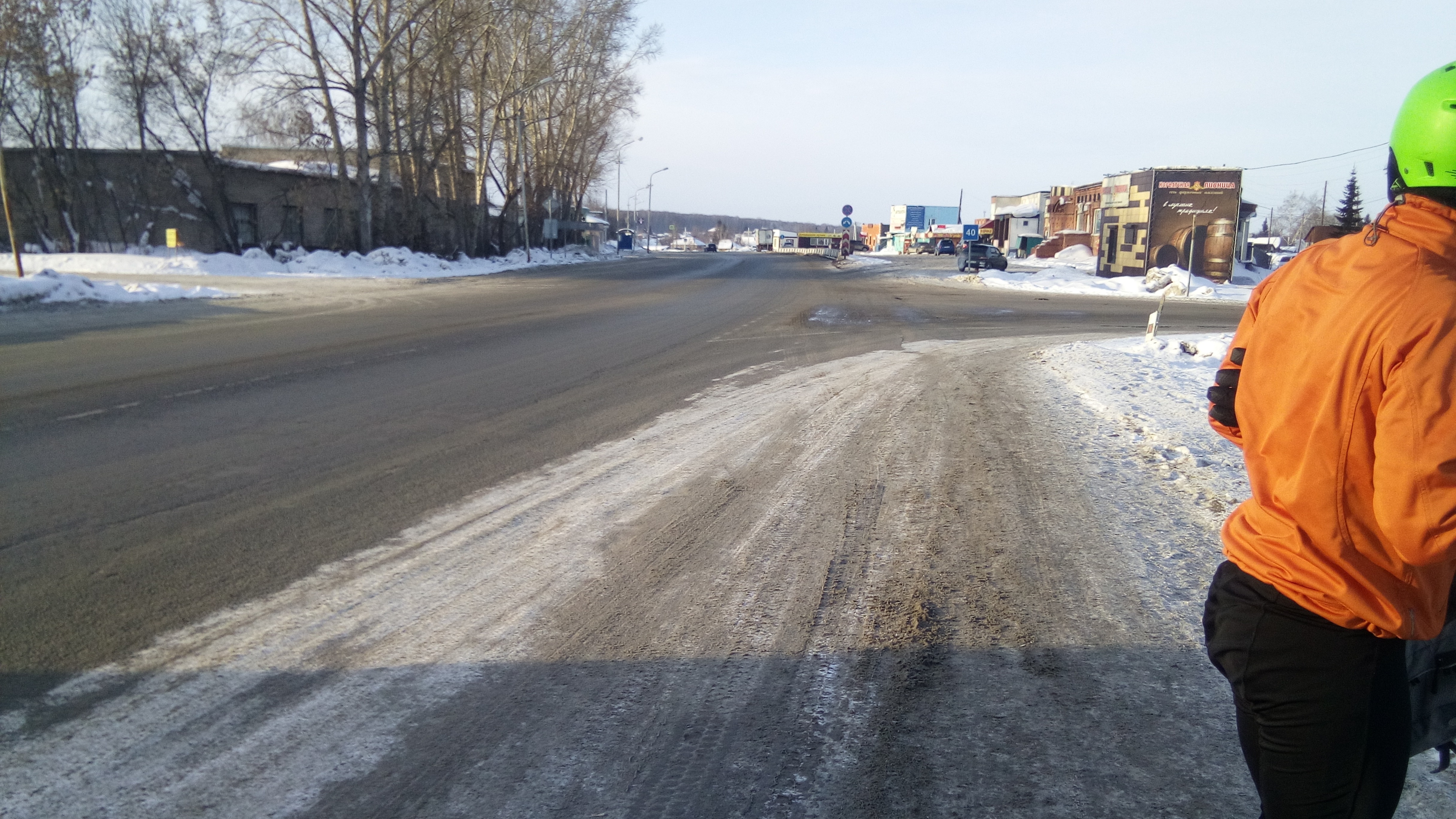 Оставшиеся 100 км ехал на зубах , болевые ощущения в колене уменьшил 34-ой передней звездой , мелкий подьемчик из Боровое пришлось идти пешком , хотя и ветер в спину , так же спешился в подьем на выезде из ВерхТулы . Благополучно добрался до Обь ГЭС , на светофоре увидел Николая , возвращающегося на машине домой после финиша . Финишировал под горку , чуть подкручивая педали , снега обещанного синоптиками не было , было тепло и классно )