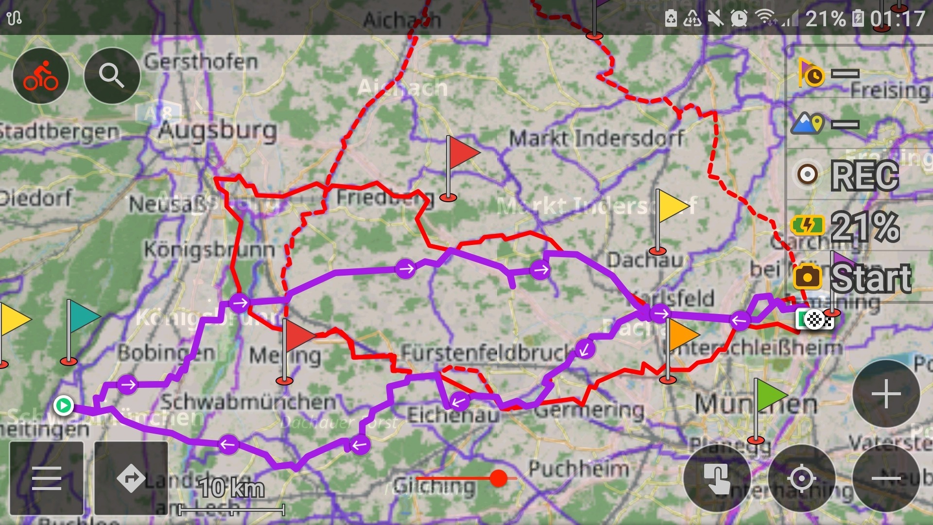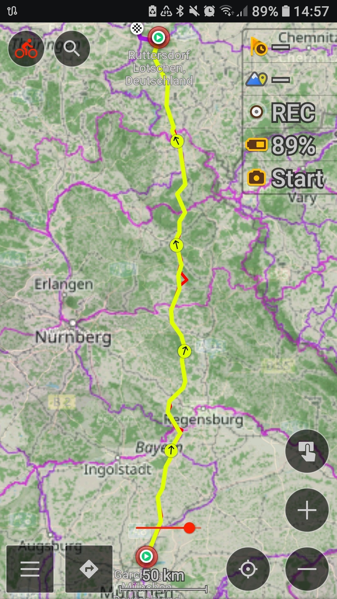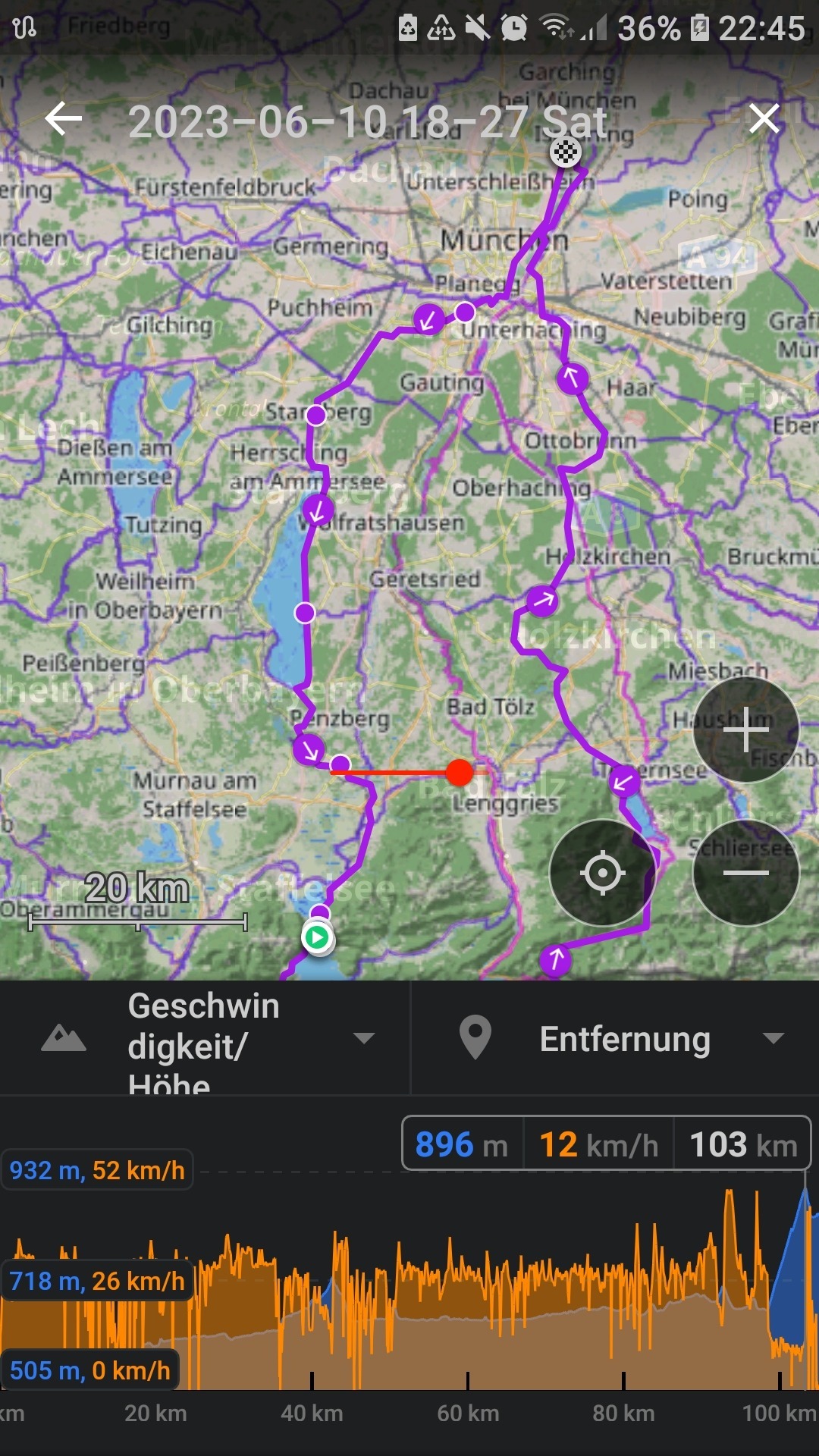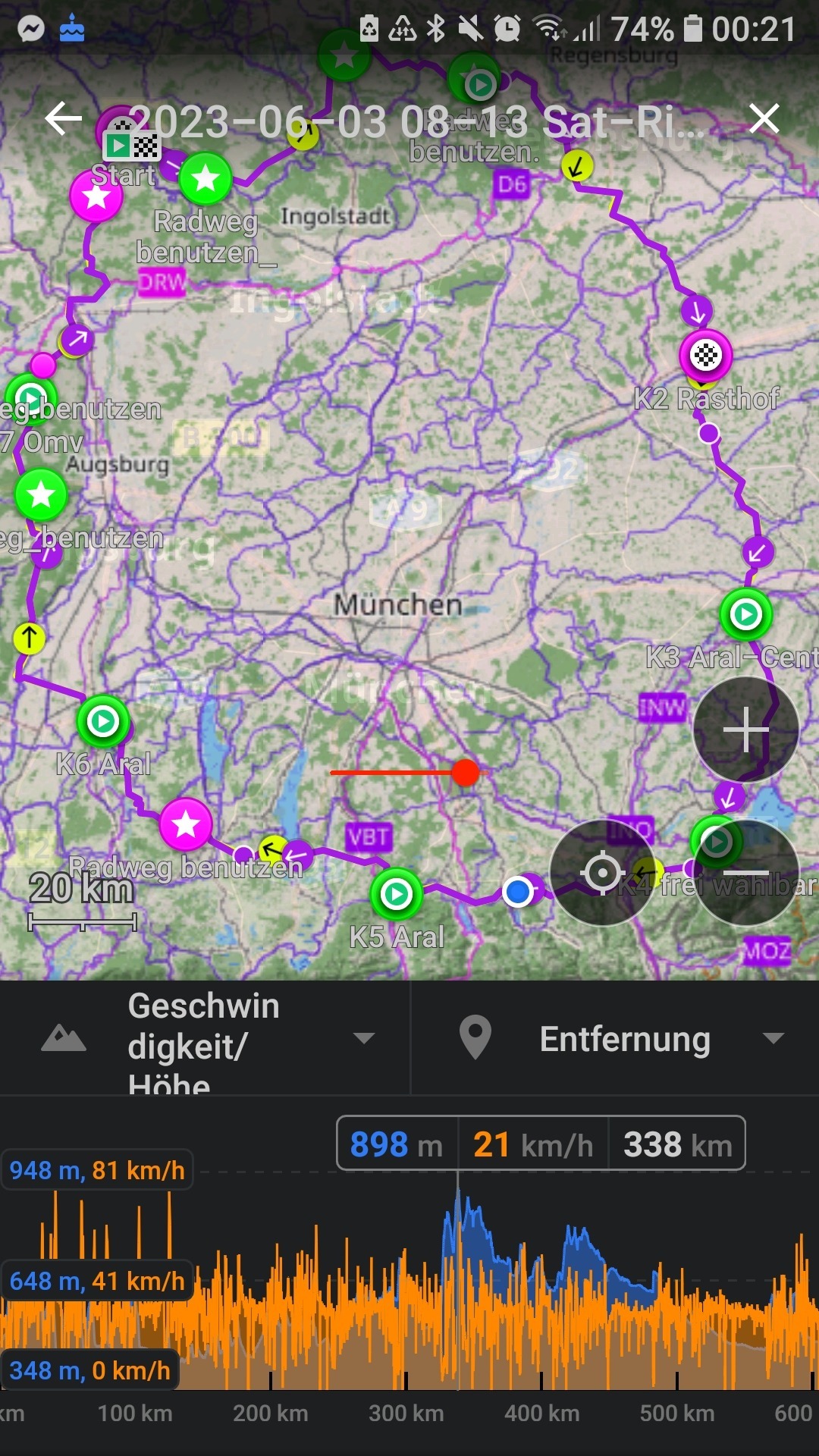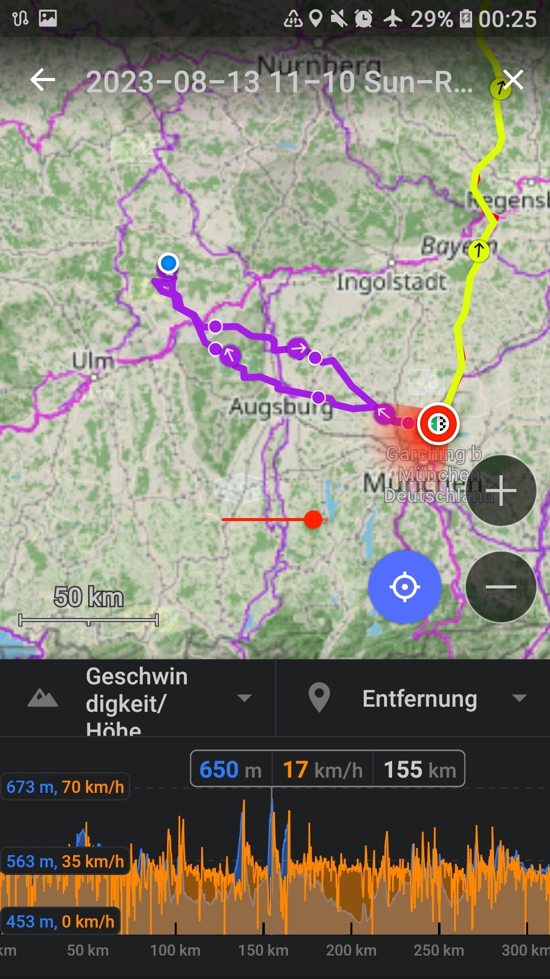 Aber wieder Glück und die Front war ungefähr genauso schnell wie ich oder schneller. Und bis auf die nasse Straße ab Dachau dann doch kein Problem - nur alles nochmal spannender :)