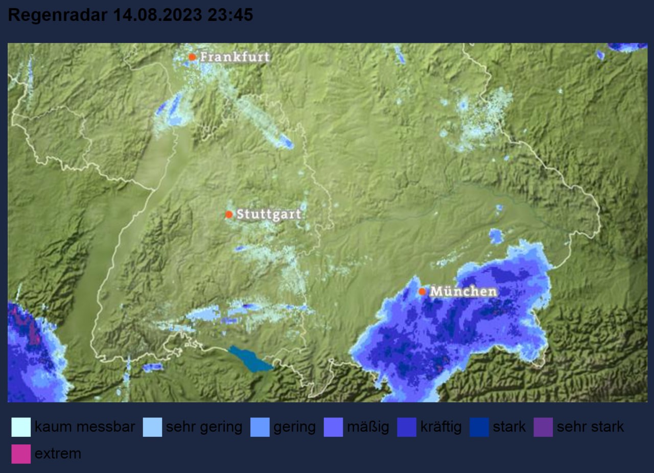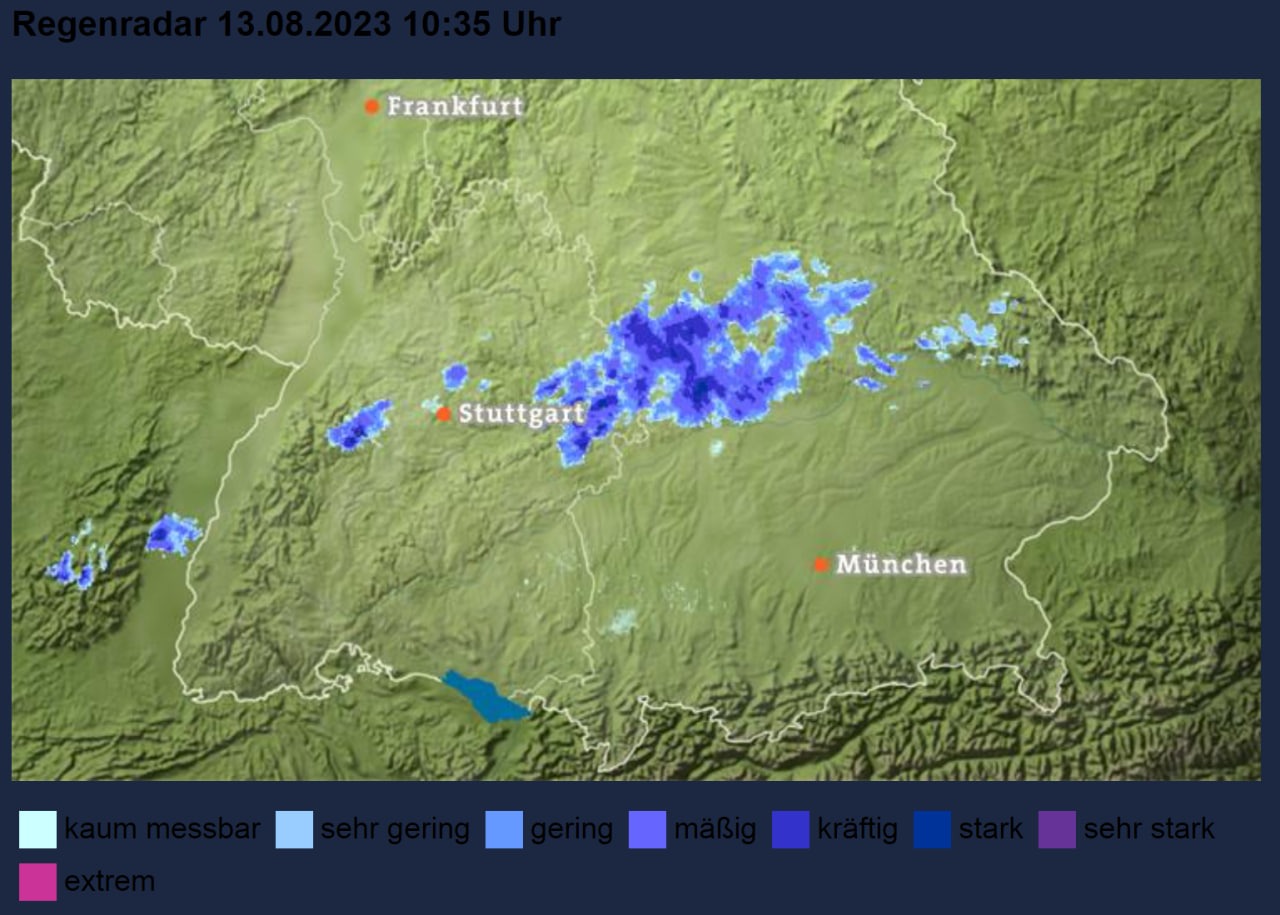 Das grau-in-graue Wolkenbild im Osten sah nicht gut aus und sprach eine eindeutige Sprache - der während des Aufenthalts stärker gewordene Regen dürfte erstmal nicht gleich wieder aufhören. Der Blick auf das Radar versprach aber, dass es gegen sieben Uhr besser werden könnte.