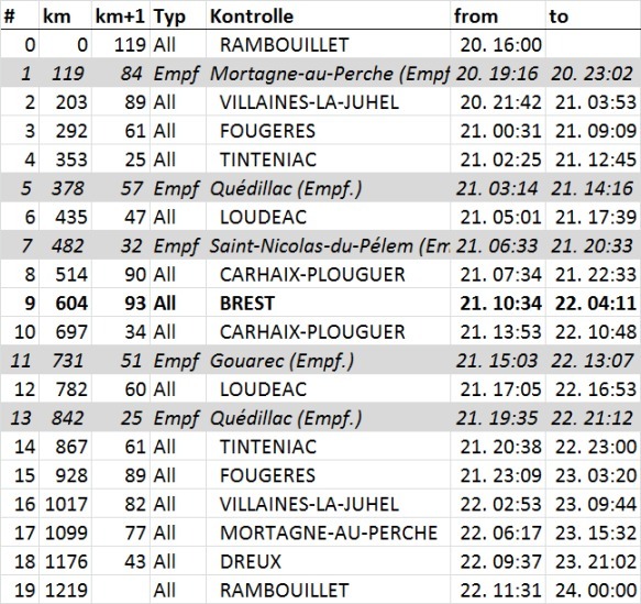 Ok - ich hab noch gefummelt und mir die km und Zeiten etwas kompakter zusammengestellt: