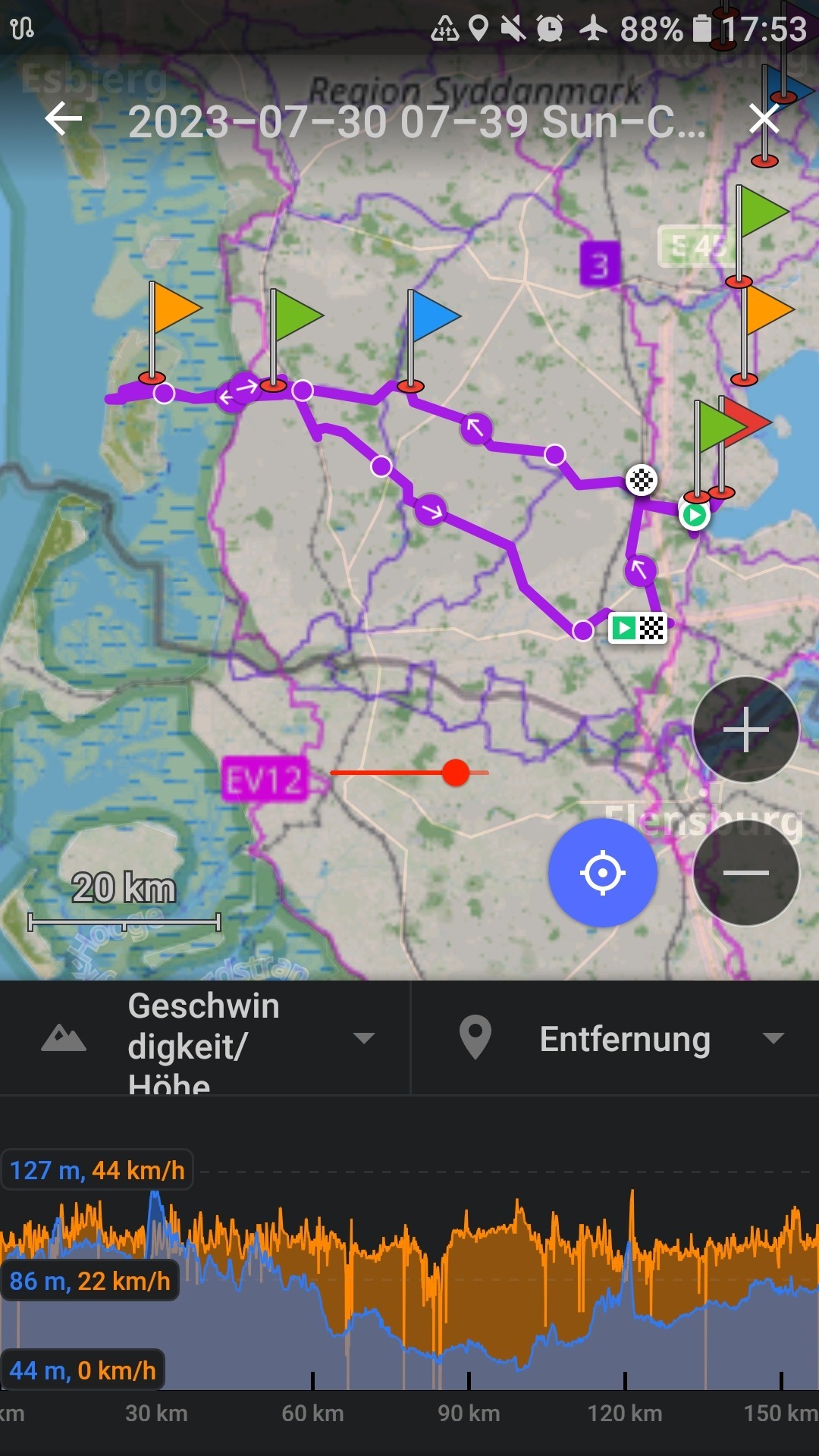 Am Schluss hat der Rückenwind nochmal ordentlich geschoben, was ganz gut war (ist fast noch "heute" geworden ^^)