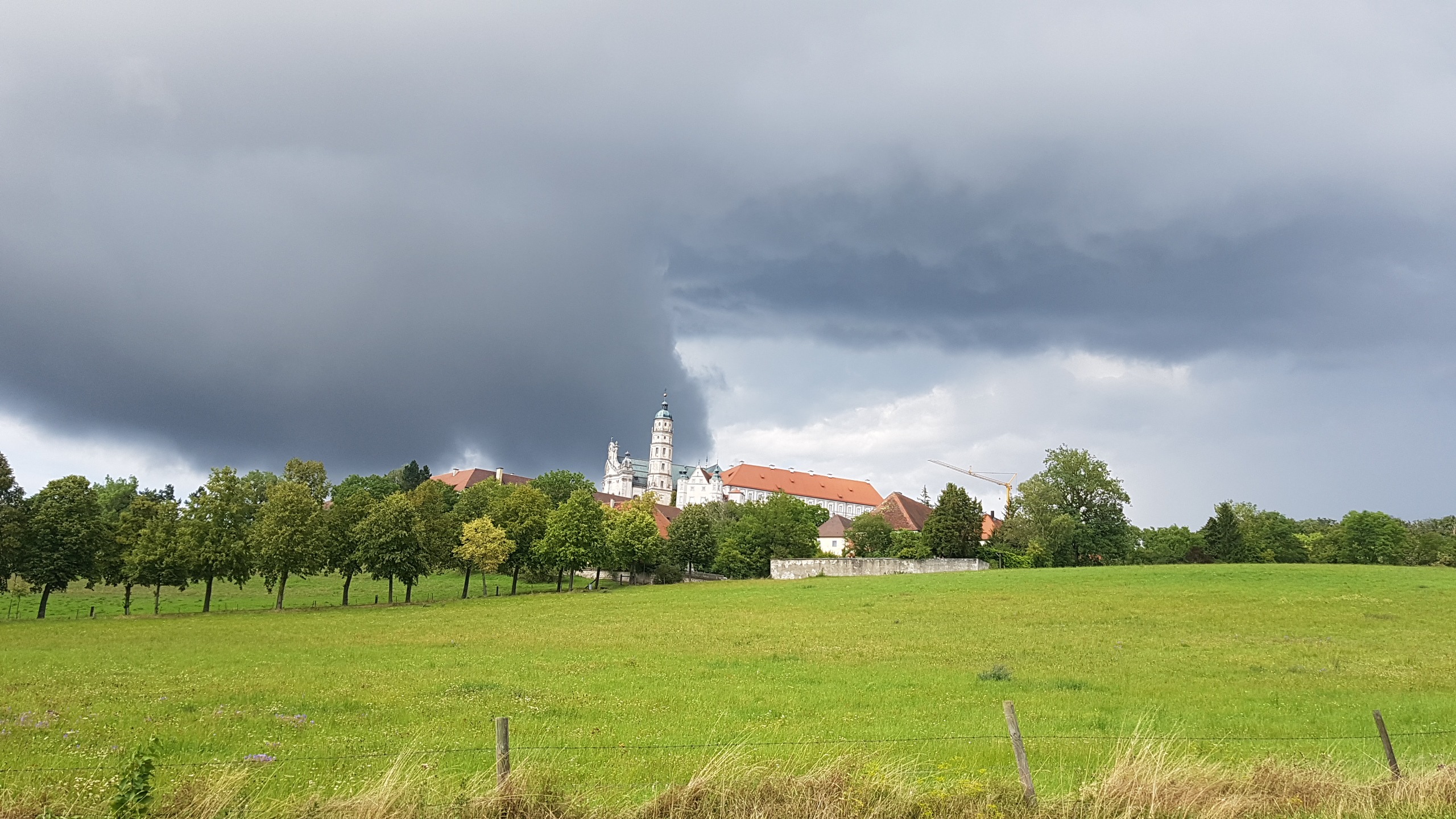 Wie vorher schon im Wetterbericht abzusehen, hatte sich dann im Westen von Dillingen an der Donau ein fettes Gewitter zusammengebraut, welches offensichtlich die geplante Route direkt kreuzen würde. Den Plan ändern und schon umdrehen, solange es noch trocken war...? Dafür war ich jetzt nach fast 5h doch schon zu weit und das Ziel zu nah...