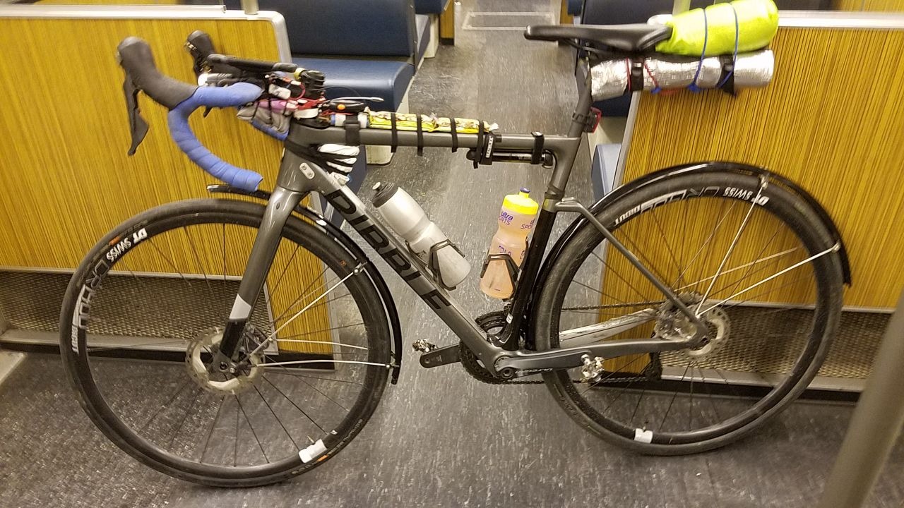 Nochmal etwas Dichtmilch nachgefüllt, nachdem der Luftverlust am Vorderrad etwas sehr angestiegen war. Und auch die beim Putzen bemerkte lockere Schraube an der Frontlampe angezogen. Das finale Packen zog sich dann etwas. Aber gegen elf Uhr war das meiste endlich konvergiert und es ging eine Stunde nach dem Plan endlich ans Schlafen...