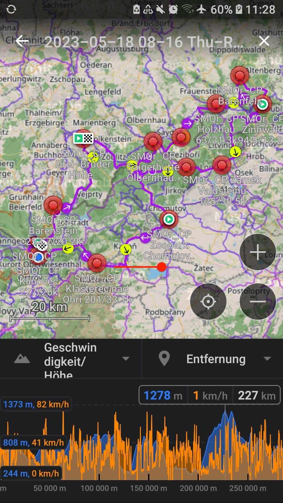 14./15. April 2022: Donnerstag bei noch sommerlichen 22°C gestartet, wandelte sich das Wetter über Nacht in kühle Winter-Bedingungen und den ganzen Sonntag blasender lebhafter Gegenwind aus NNO gestaltete den Weg über den Kamm des Fichtelgebirges etwas zäher, als die beiden Jahre zuvor.