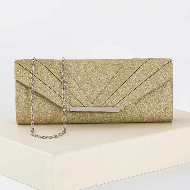 «Bride Wedding Purse Minimalist Pleated Designer Evening Bag Gold Glitter Box Envelope Bag Party Mini Clutch Chain Shoulder Bag» по лучшей цене на рынке! Всего за 25$ (2375рублей)