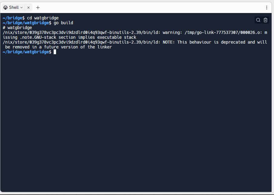 5) Navigate to watgbridge and type "go build" (it make some time)
