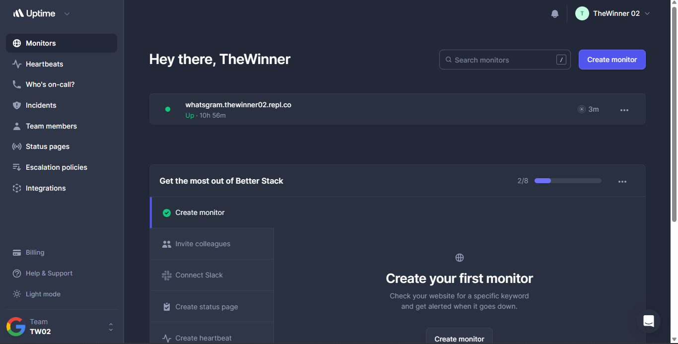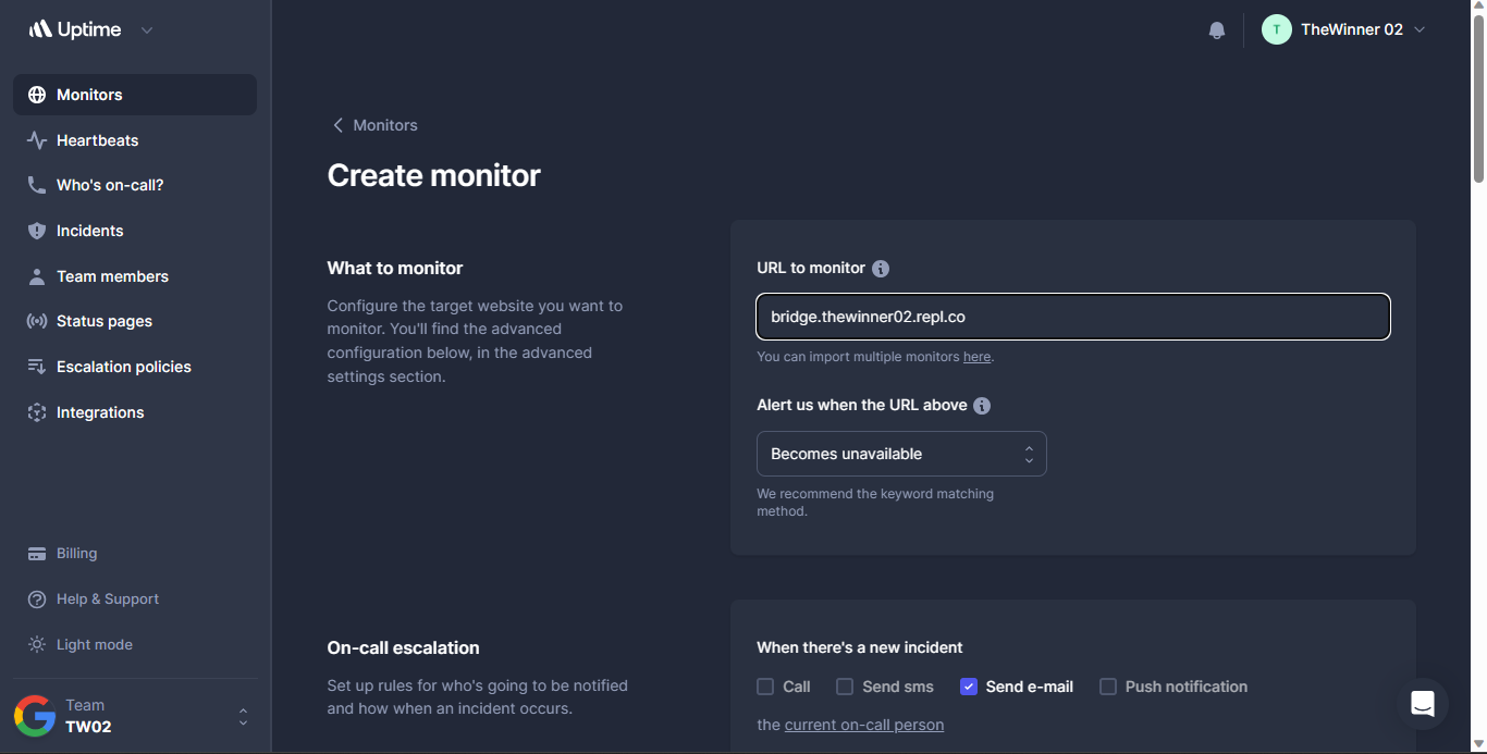 4.1) a web page will open, copy the link and paste it on betterstack on "URL to monitor"