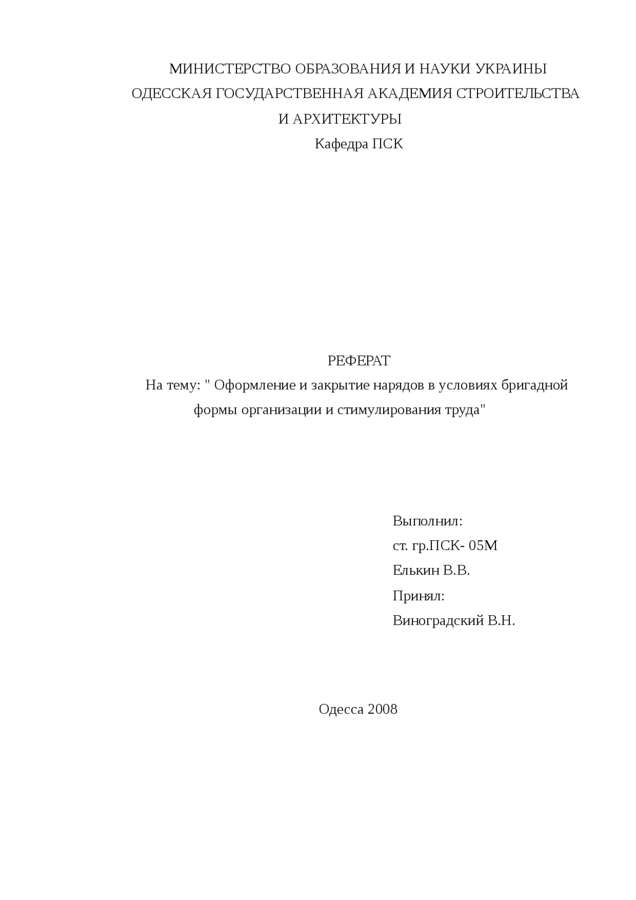 Реферат: Организация работы в бригаде - Xreferat .com . . .