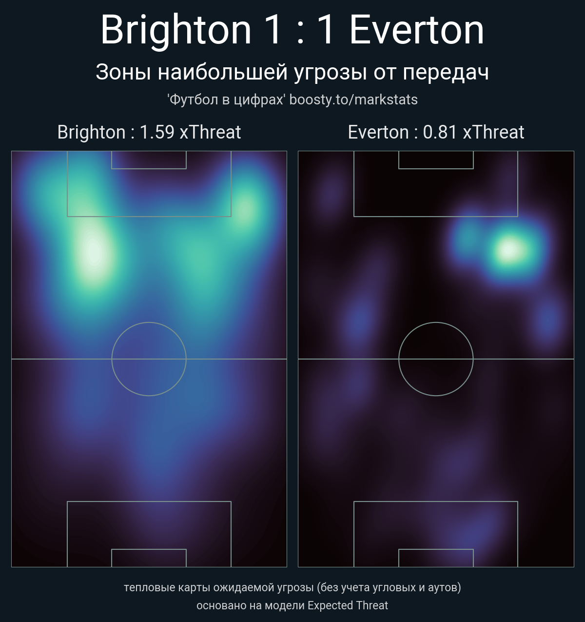 xThreat без учета угловых: 1.59 - 0.81