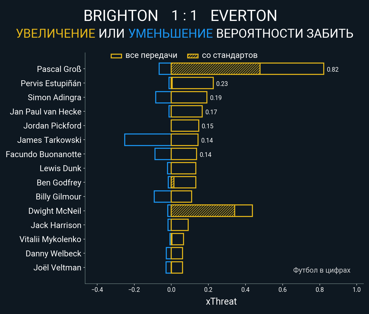 0.34 очка xT (+0.48 со стандартов)