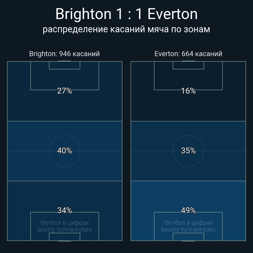 Касания в штрафной: 46 - 22