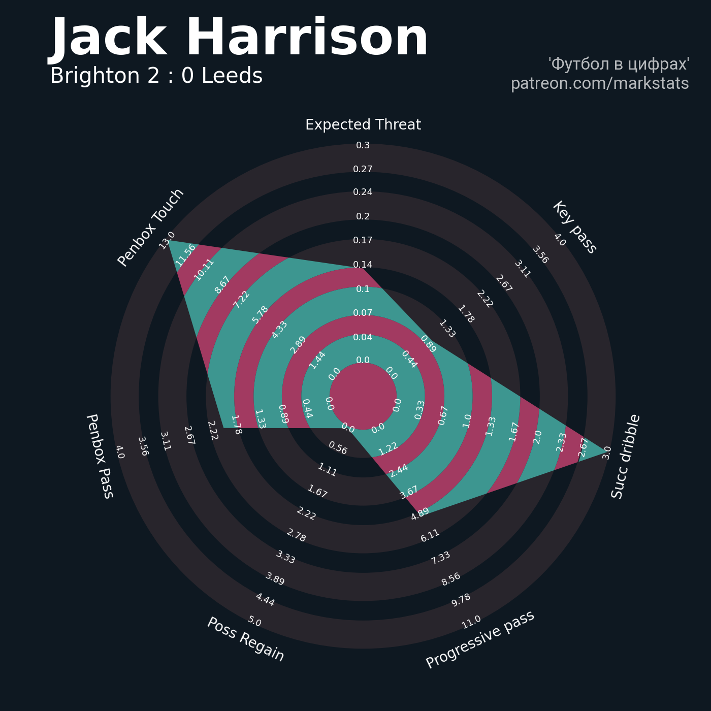 ▪ 0.16 очка xT (+0.01 со стандартов)