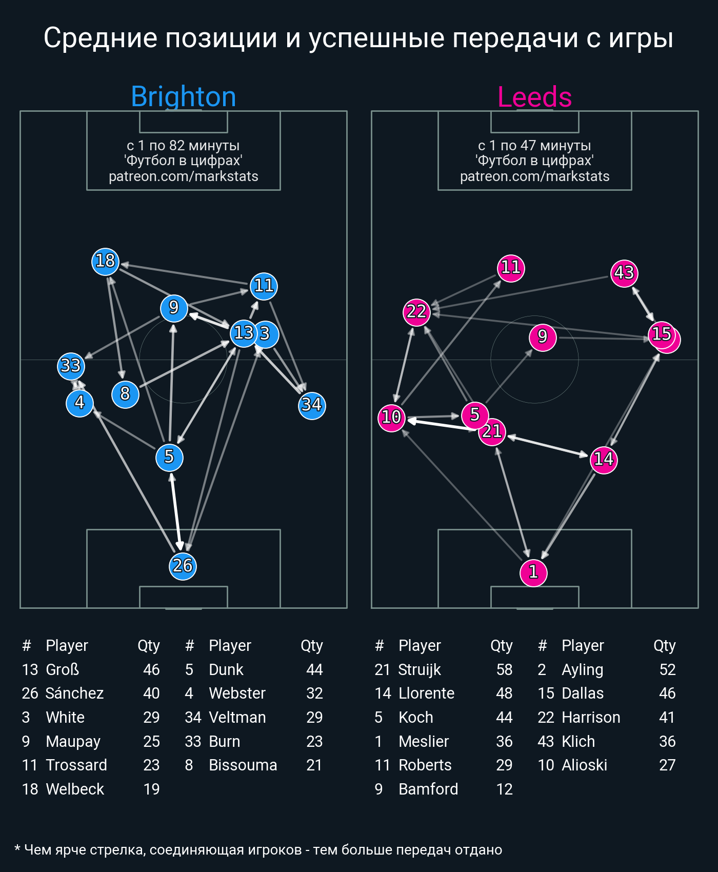Футбол в цифрахСтатистика матча Brighton - Leeds