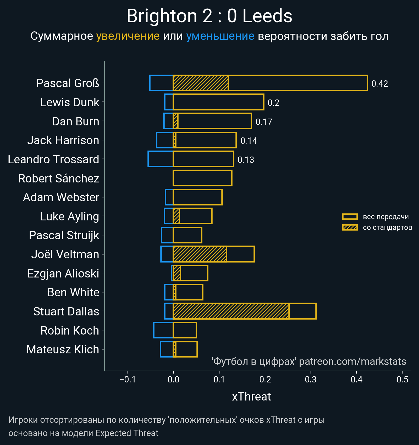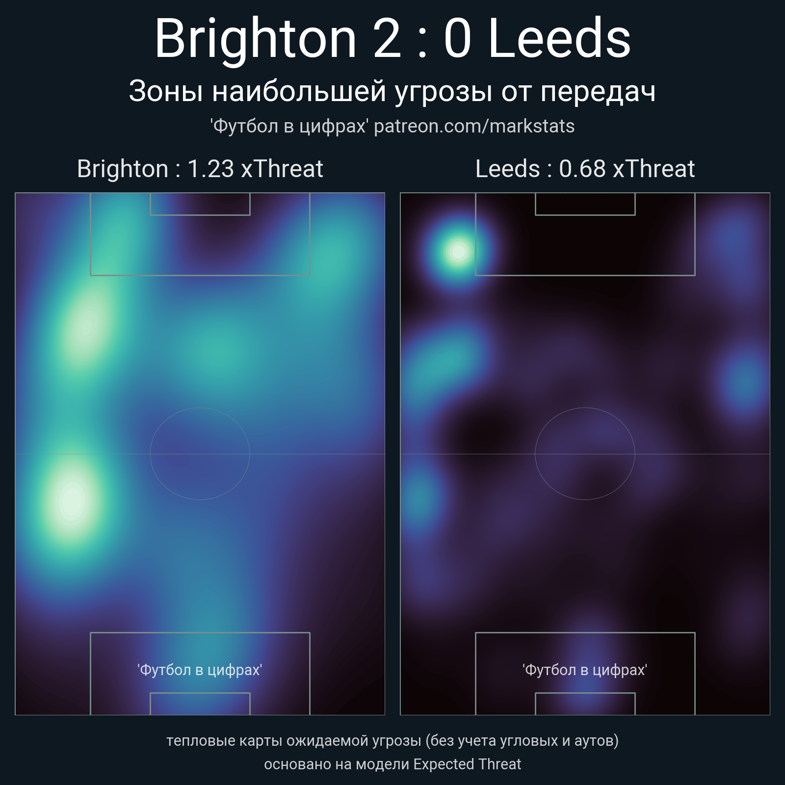 ▪ xThreat без учета угловых: 1.23 - 0.68