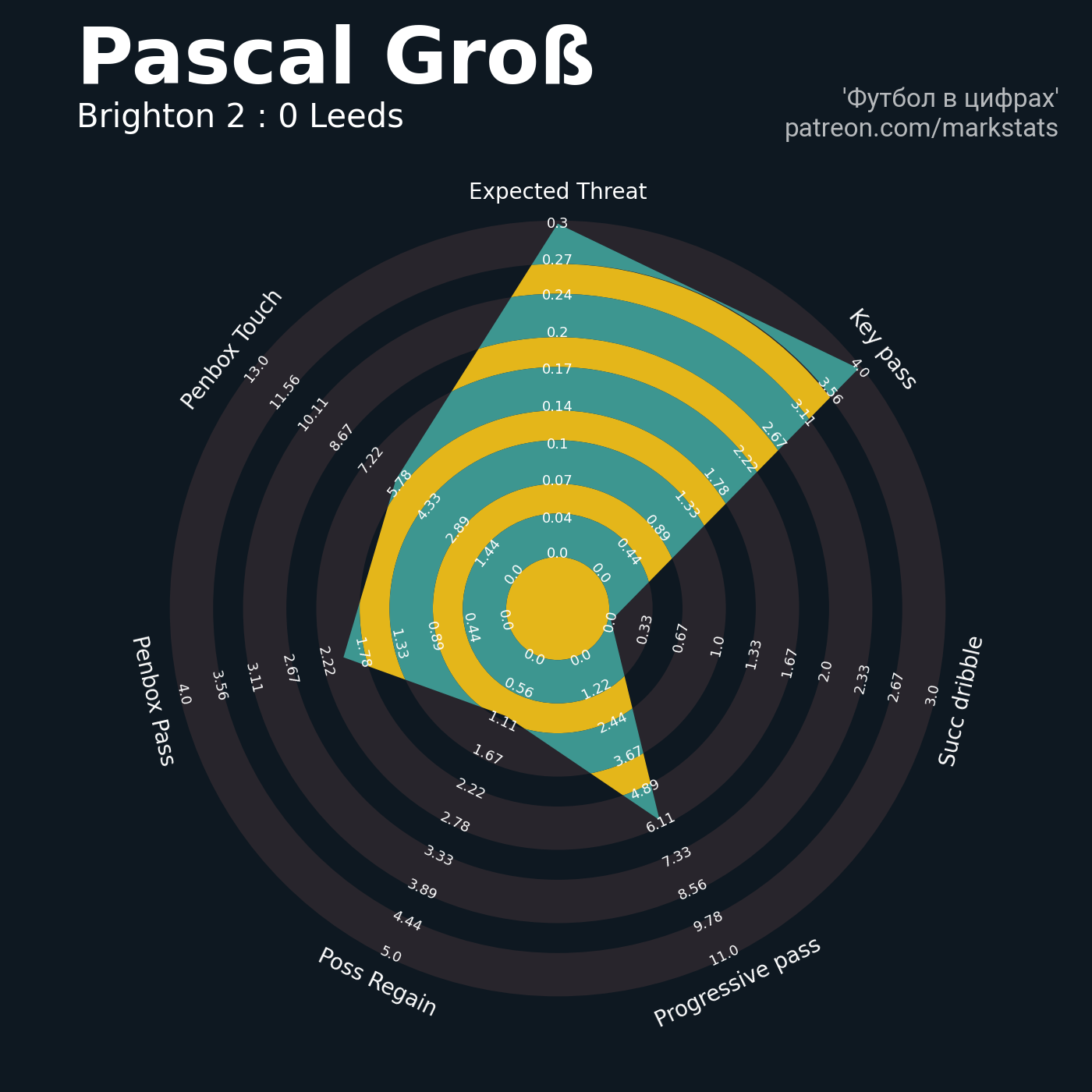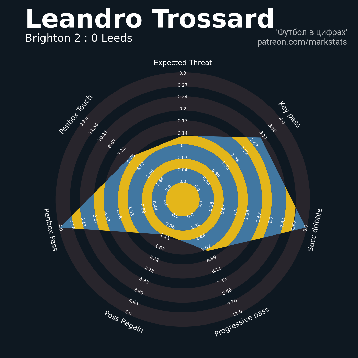▪ 0.3 очка xT (+0.12 со стандартов)