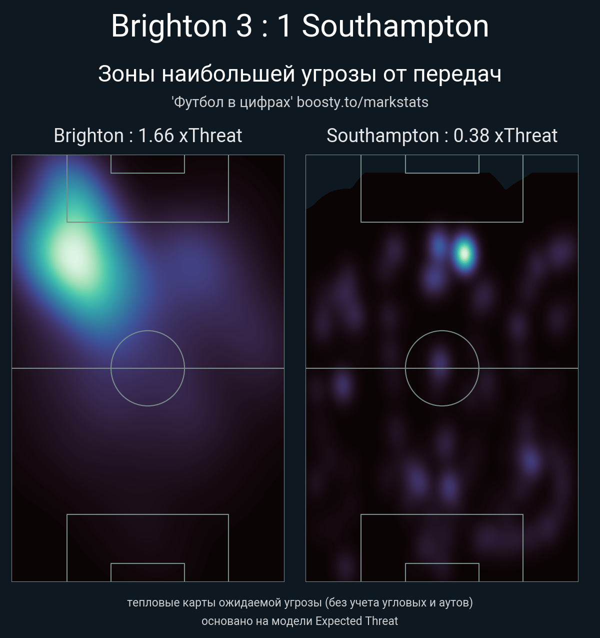 xThreat без учета угловых: 1.66 - 0.38