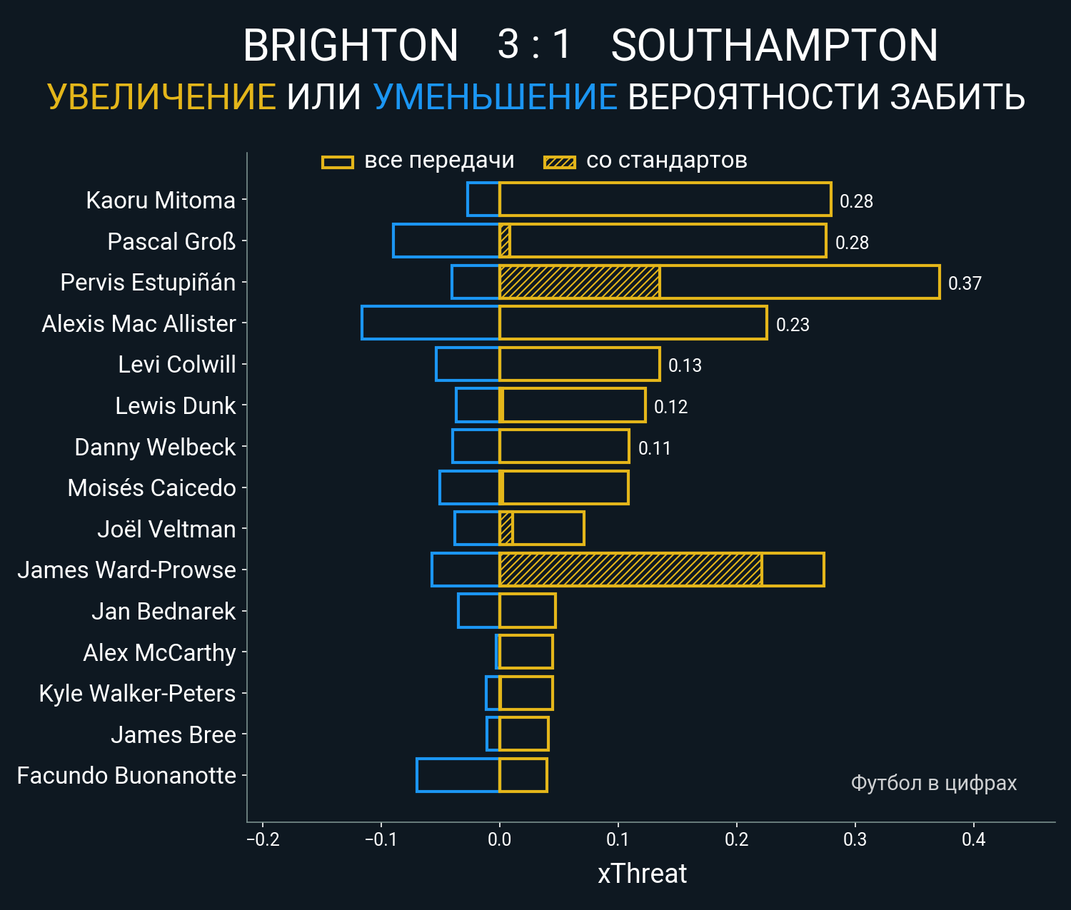 0.13 очка xT (+0.0 со стандартов)