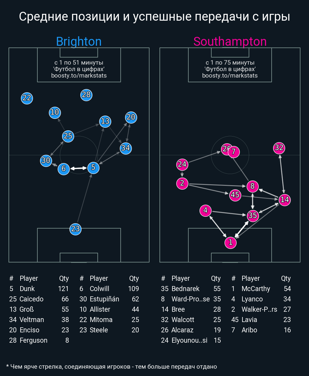 100 успешных передач из 109 попыток (1 под удар, 5 с продвижением, 2 на трети соперника)