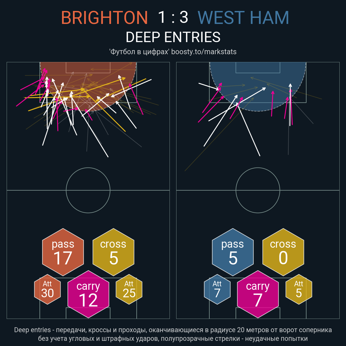 33 успешных передач из 43 попыток (2 под удар, 4 с продвижением, 27 на трети соперника)