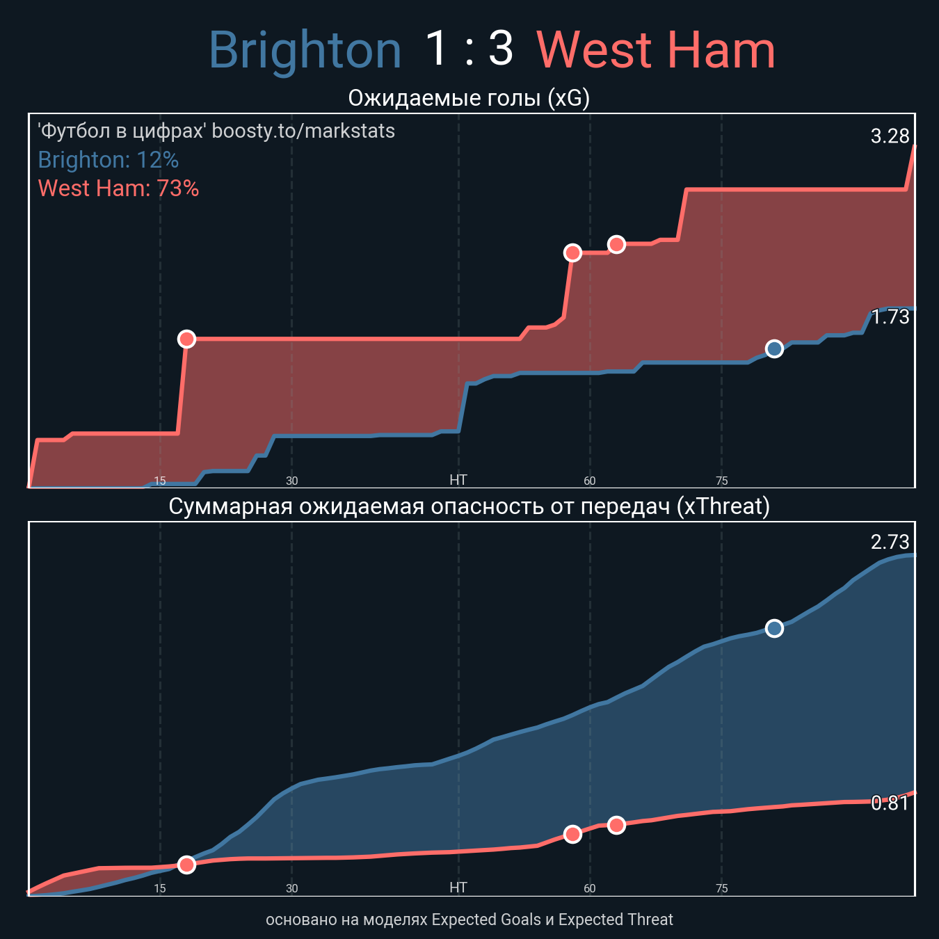 Ожидаемые голы (NPxG): 1.73 - 3.28