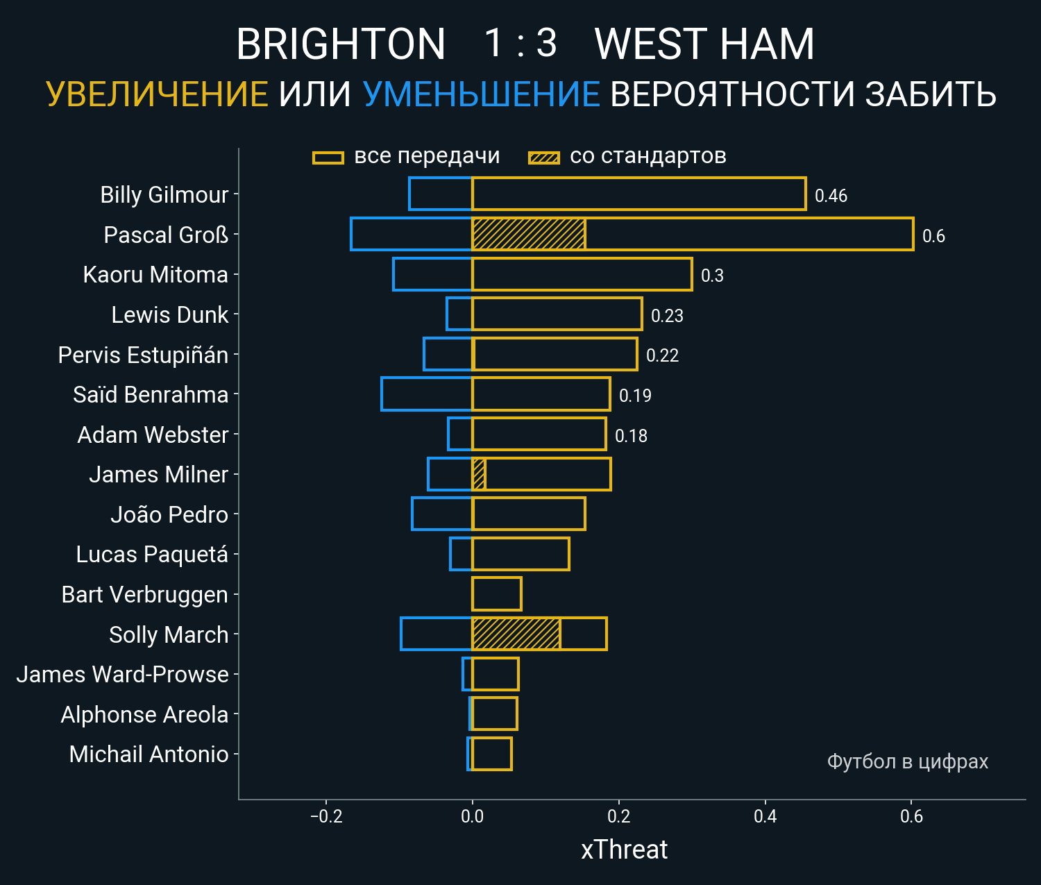 0.45 очка xT (+0.15 со стандартов)