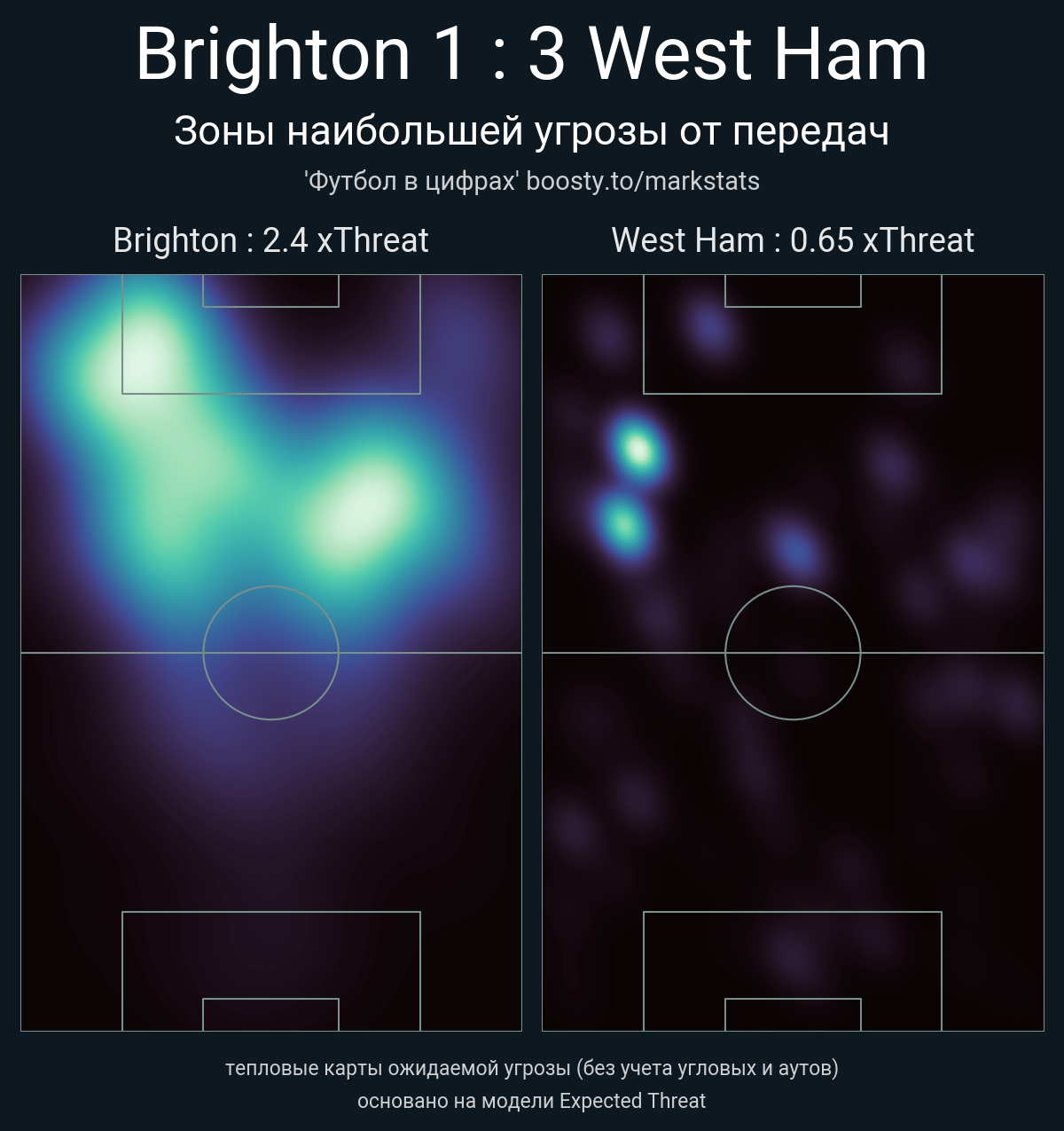 xThreat без учета угловых: 2.4 - 0.65