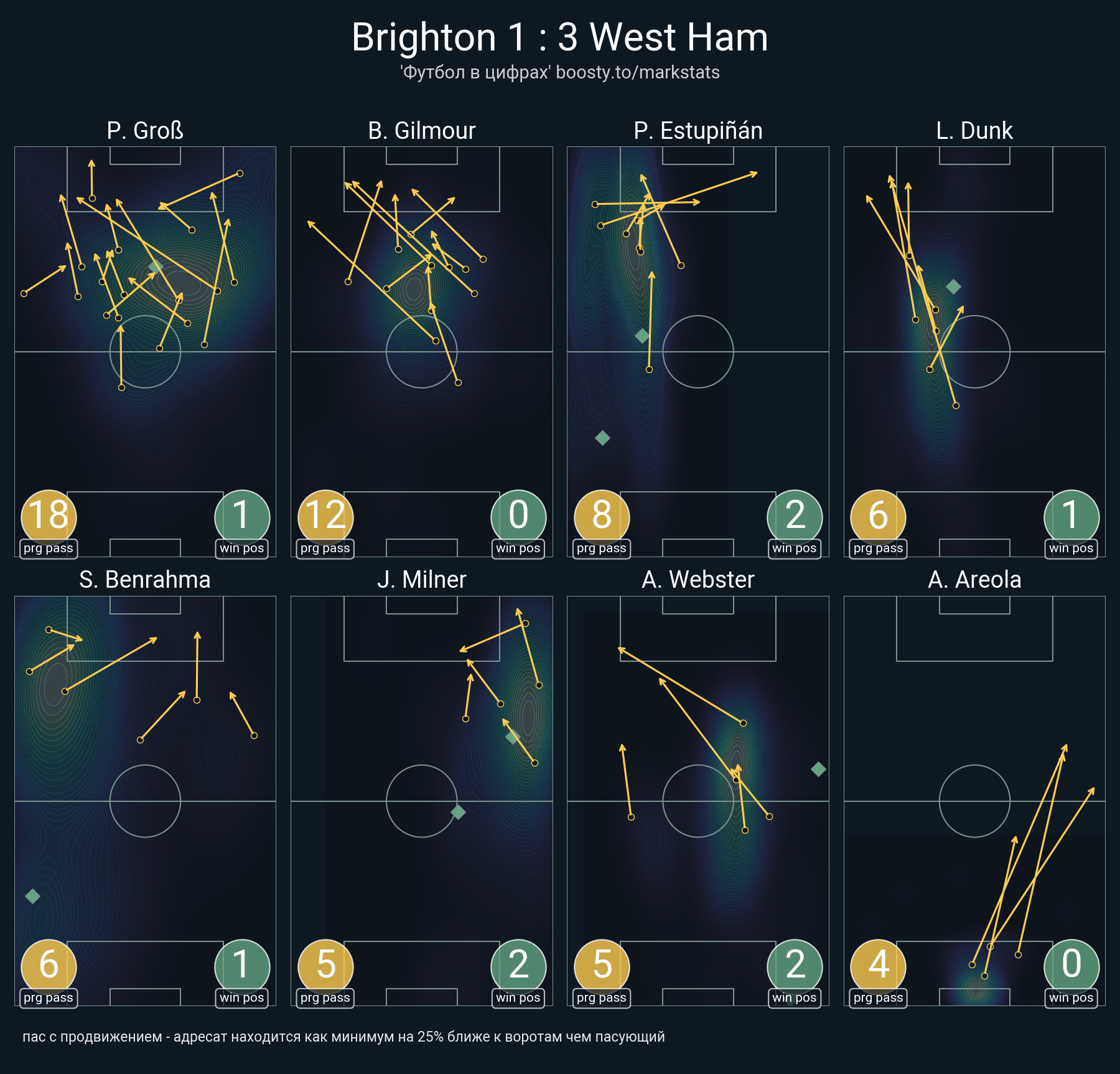 115 успешных передач из 127 попыток (6 с продвижением, 9 на трети соперника)