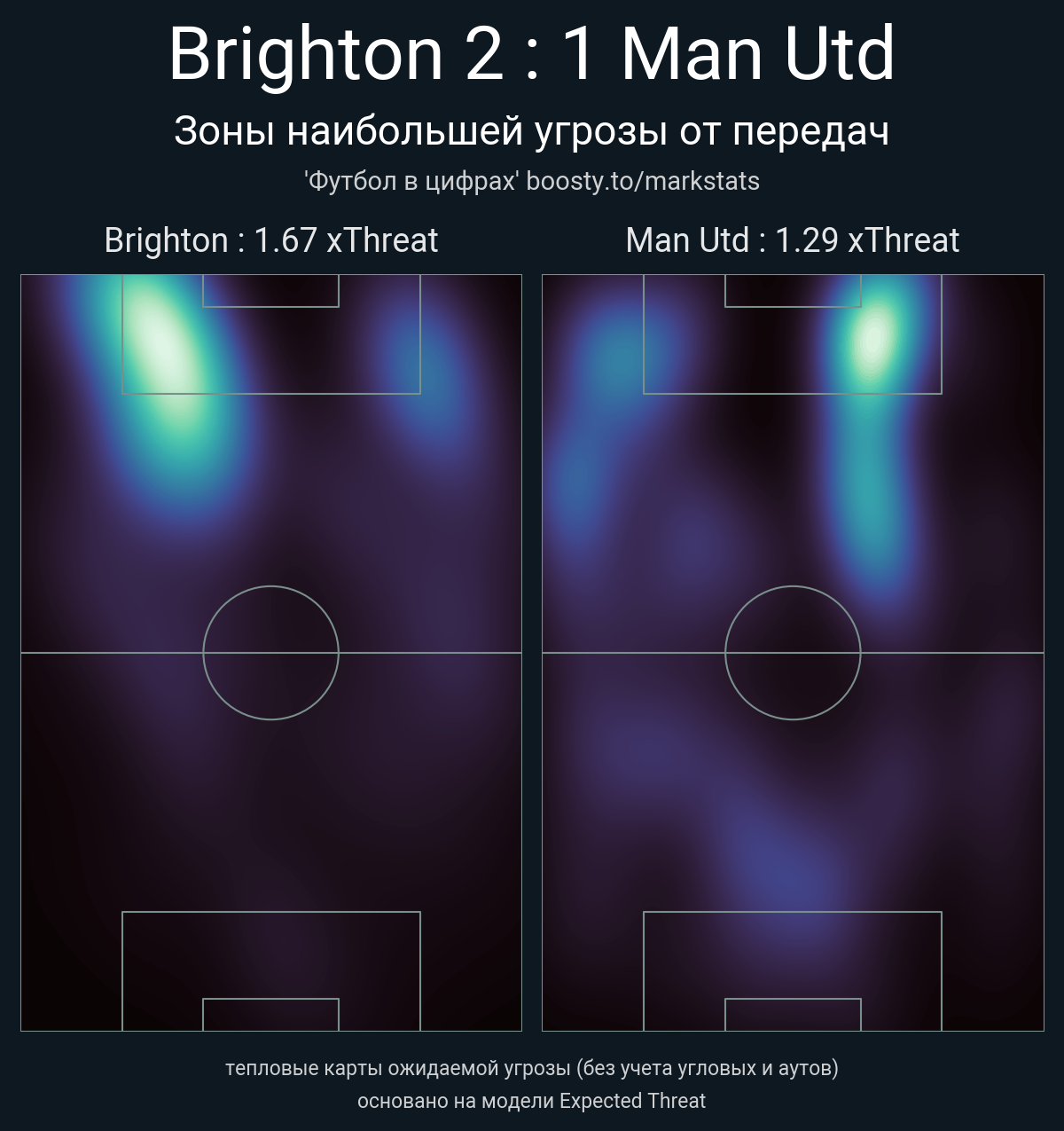 xThreat без учета угловых: 1.67 - 1.29