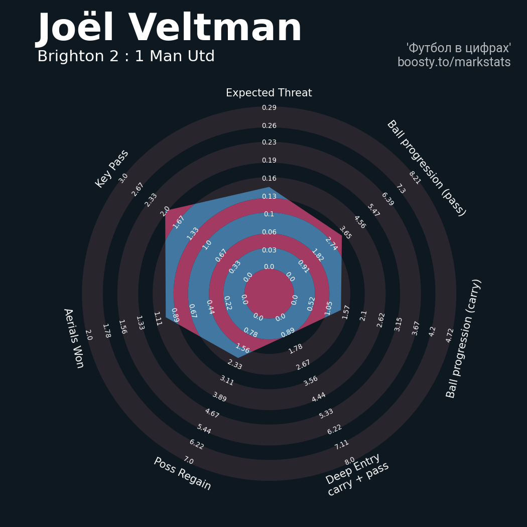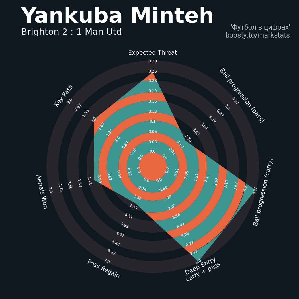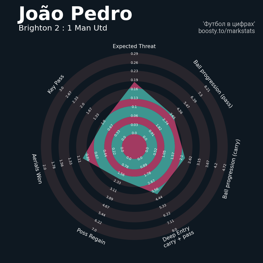 19 успешных передач из 24 попыток (1 под удар, 7 с продвижением, 8 на трети соперника)