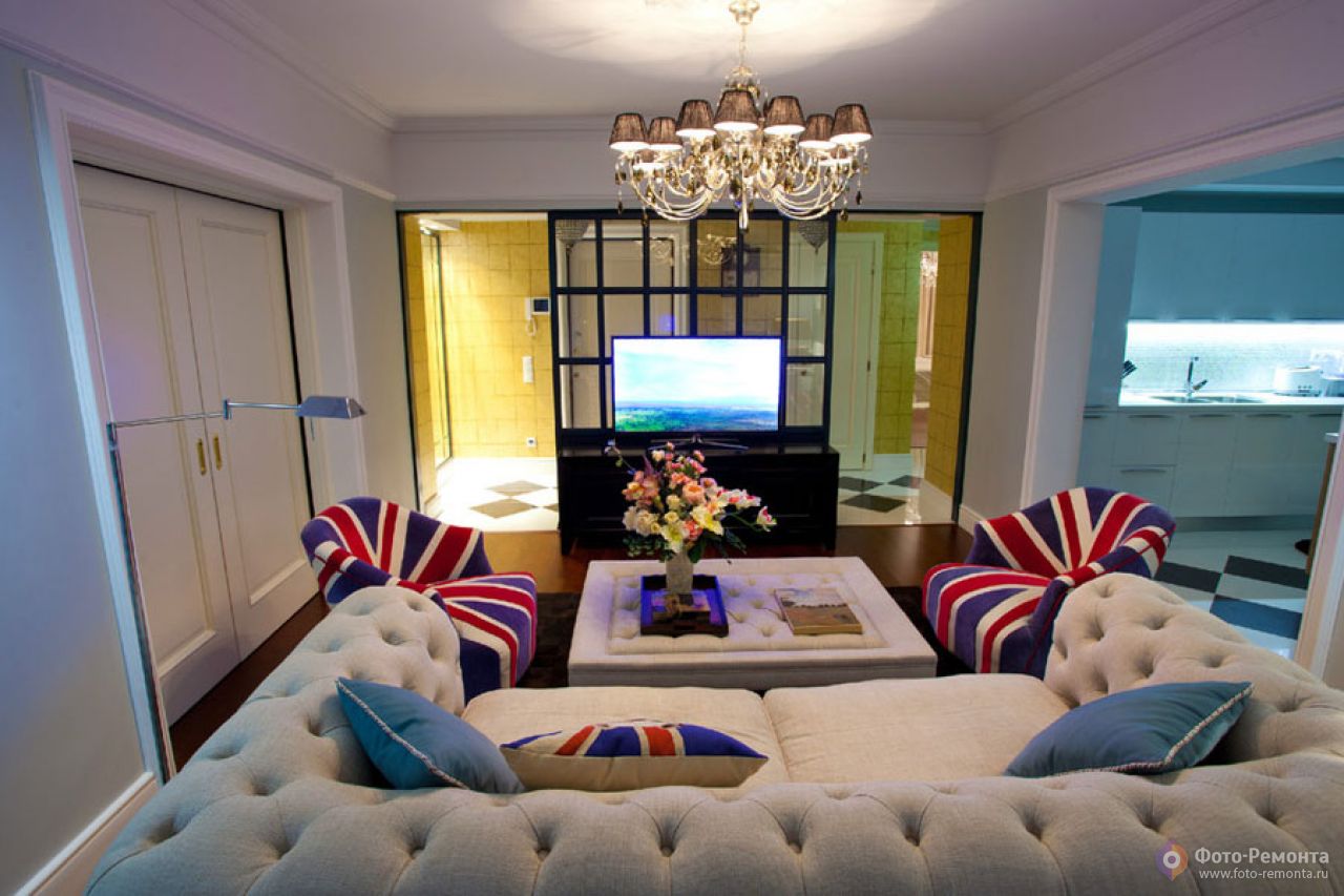 Британский флаг в интерьере фото . В продаже сегодня имеются и диваны с раскраской британского флага - наиболее популярного в декорировании интерьеров . Кресла, пуфики, настольные лампы с . . .