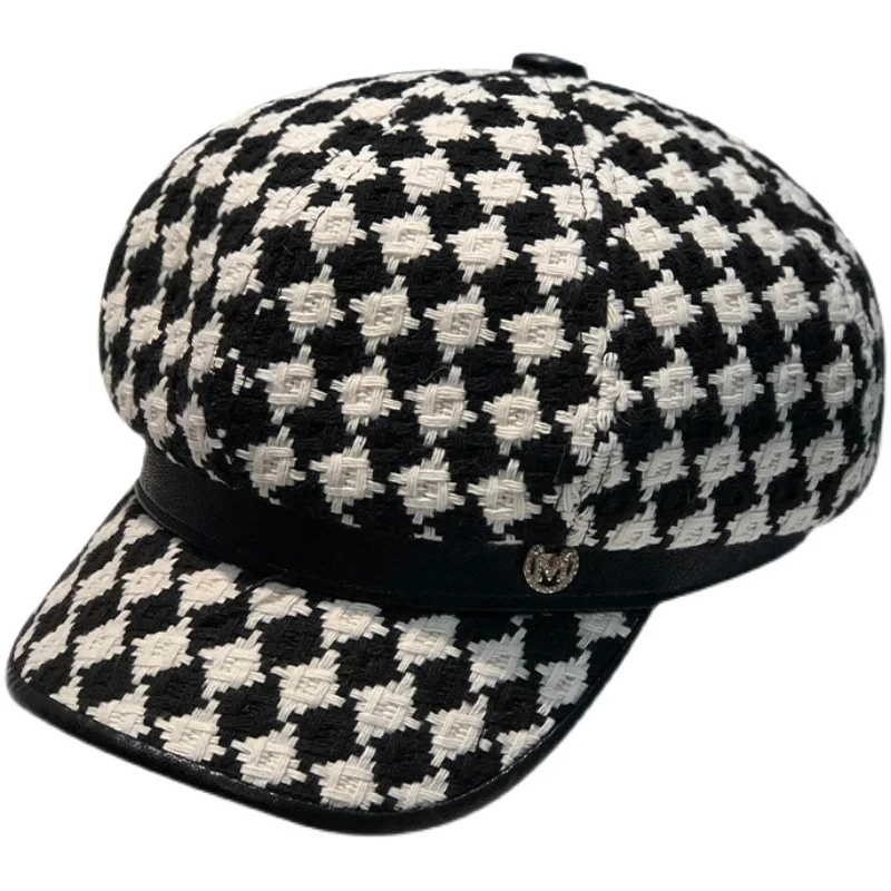 «British Retro Houndstooth Octagonal Hat Women's Korean Version Knitted Plaid Beret Autumn and Winter All-match Painter Hat» по лучшей цене на рынке! Всего за 10$ (950рублей)