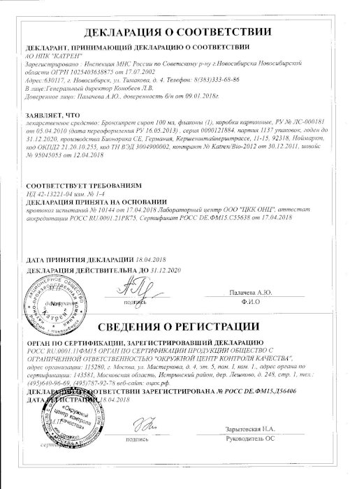 БРОНХИПРЕТ сироп - инструкция по применению, цена . . .