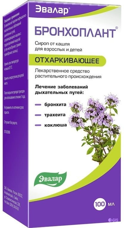 «Бронхоплант» оказывает отхаркивающее и противомикробное действие, выводит мокроту очищая таким образом легкие . Он представляет собой фитосироп на основе экстракта тимьяна (чабреца) .