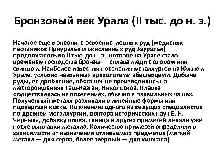 Бронзовый век урала