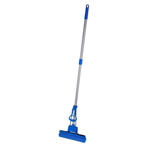 La vadrouille auto-pressante OfficeClean Professional avec un accessoire éponge en PVA résistant à l'usure est conçue pour le nettoyage humide des sols, des tapis, ainsi que pour le lavage des fenêtres et des murs. Le modèle est équipé d’une poignée télescopique réglable en hauteur en fonction de la taille d’une personne pour une utilisation confortable. Un mécanisme de poignée télescopique pratique vous permet de fixer ses 2 parties en position coulissante, empêchant ainsi le pliage spontané. Le manche de la vadrouille possède également une pointe en plastique avec un trou pour accrocher à un crochet. La vadrouille s'essore facilement en soulevant le levier. Une essoreuse spéciale à double rouleau empêche le contact des mains avec l'eau et les détergents. L'embout éponge PVA absorbe parfaitement l'eau, collecte la saleté, attire la poussière, les petits débris, le sable, les poils d'animaux et collecte également parfaitement les poils du sol et des tapis. Lorsque la buse est immergée dans l’eau, tous les débris et saletés restent dans l’eau. Avant utilisation, la vadrouille doit être immergée dans l'eau pendant 10 minutes ; une fois l'éponge ramollie, la vadrouille est prête à l'emploi. Pour de meilleurs résultats de nettoyage, utilisez avec un détergent. La température de l'eau utilisée ne doit pas dépasser 50°C. Type de serpillière : auto-essoreuse avec double essorage à rouleaux. Type de montage de buse : 4 boulons. Type de montage de la poignée : intégré. Diamètre du manche : 2,5 cm. Longueur maximale du manche : 125 cm. Longueur minimale du manche : 70 cm. Longueur du 1er rouleau : 1,5 cm. Dimensions des buses : 27 x 5,5 cm. Matériau du manche : métal. Matériau du rouleau : plastique. Poids : 675 g Tête de rechange : 303059. Analogique : 303270 (un seul essorage du rouleau). La large gamme de vadrouilles OfficeClean est un excellent choix pour le nettoyage à sec et humide des locaux, ce qui permet d'économiser du temps et des efforts consacrés au nettoyage manuel.