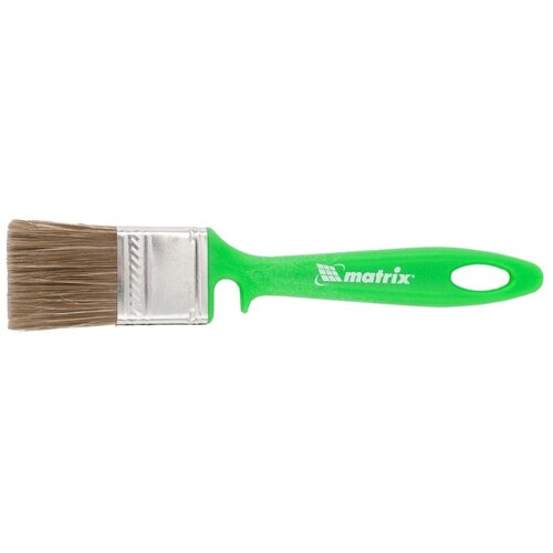 Pinceau flûte "Woodwork" Color Line Matrix 35 x 10 mm. Une ligne de pinceaux « Menuiserie » pour des travaux de toute complexité avec tous types d'émaux, peintures, vernis, imprégnations, antiseptiques destinés au travail du bois. Les pinceaux fonctionnent bien...La brosse « travail du bois » Matrix Color Line 83372, de 35 mm de large et 10 mm d'épaisseur, s'utilise avec tous types d'imprégnations, adhésifs, apprêts et autres composés pour le travail du bois. Les poils combinés sont fendus aux pointes et contiennent des fibres naturelles, de sorte que le pinceau absorbe et libère bien les peintures et vernis. Les poils artificiels protègent les poils de la déformation lors de l'utilisation de formulations aqueuses. La haute densité des poils assure une bonne productivité du travail. Avantages : Les poils sont très résistants à l'usure, l'outil durera donc longtemps. Des cales en plastique, une colle époxy formulée de manière unique et un bandage durable assurent une liaison fiable des poils au manche et une résistance aux charges accrues. Les cales ne sont pas exposées à l'eau et aux peintures agressives, cela permet de prolonger la durée de vie du pinceau. Le revêtement anticorrosion protège le bandage de la formation de rouille. La poignée ergonomique ne provoque pas de fatigue lors d'une peinture prolongée. Le manche est doté d'un trou de suspension permettant de sécher la brosse et de la ranger en position verticale. Une découpe spéciale sur le manche permet de fixer le pinceau sur un récipient contenant des matériaux de peinture : un pot, un seau, un bain.