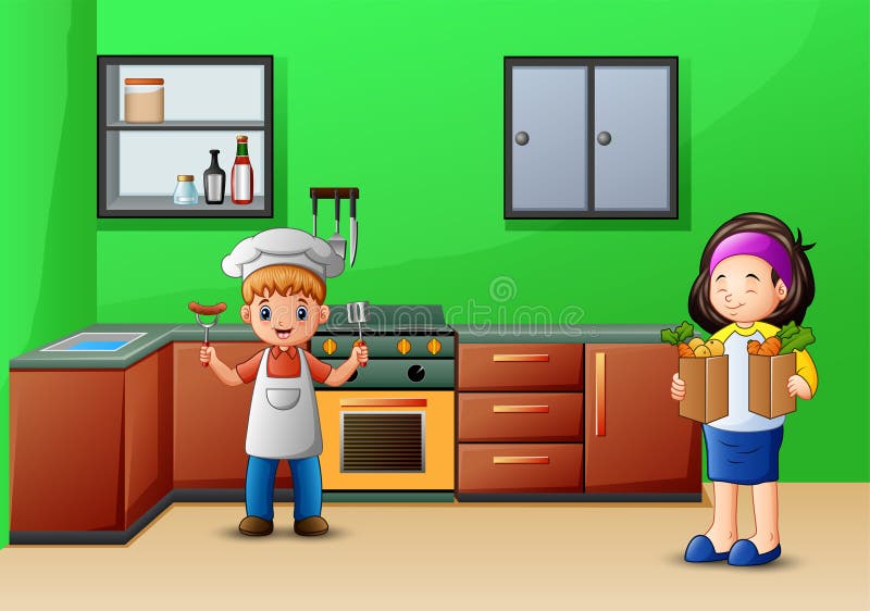 Brother And Sister Kitchen High Resolution Stock . . .