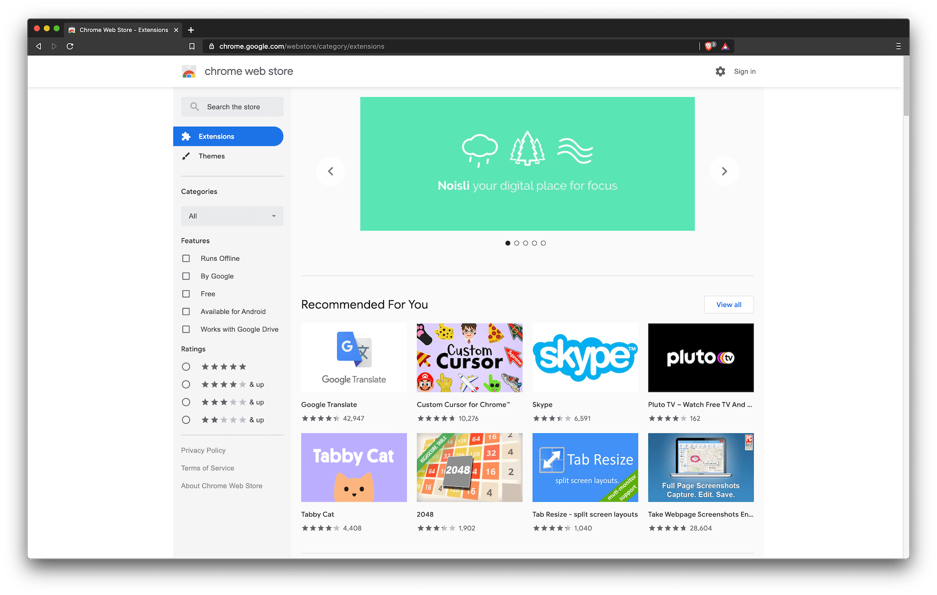 Browser extensions page